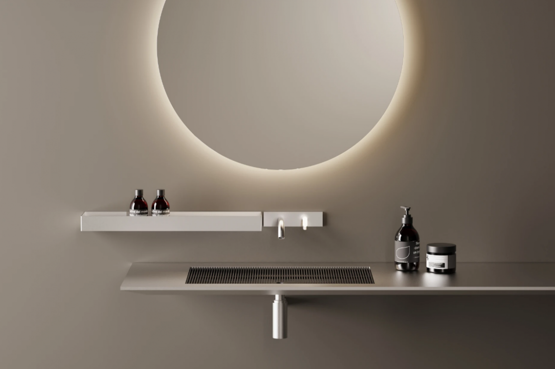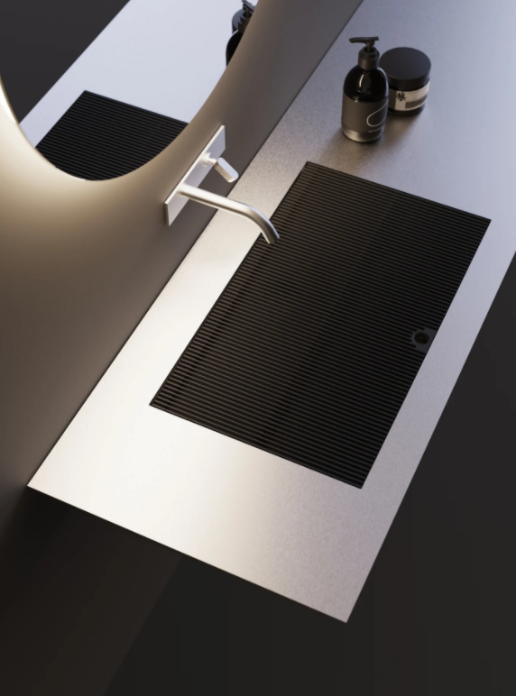 For 2022 Ell sharpens its rigorous geometries with the introduction of the steel version. The new washbasin is made of 1mm thick AISI 304 stainless steel sheets and retains all the main dimensional parameters of the Corian? version. The new material, in brushed natural steel finish, transforms Ell in an even more precise and graphic gesture and, at the same time, a mesmerizingly ephemeral object that gracefully dissolves in the reflections of the surrounding environment.
