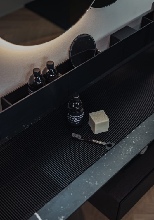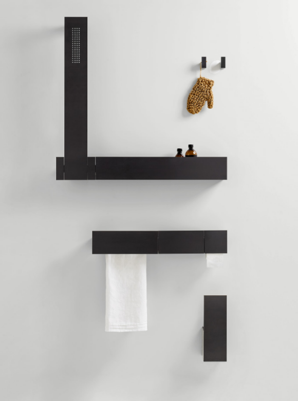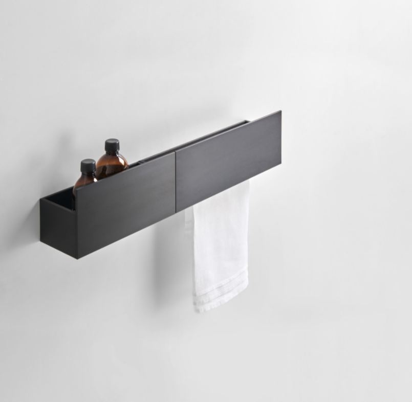 Accessories made from brushed anodised aluminium in black finish, to be matched with the range of taps with the same name. Due to their unique shape, we recommend that all wall-mounted accessories are fixed to a perfectly flat surface.