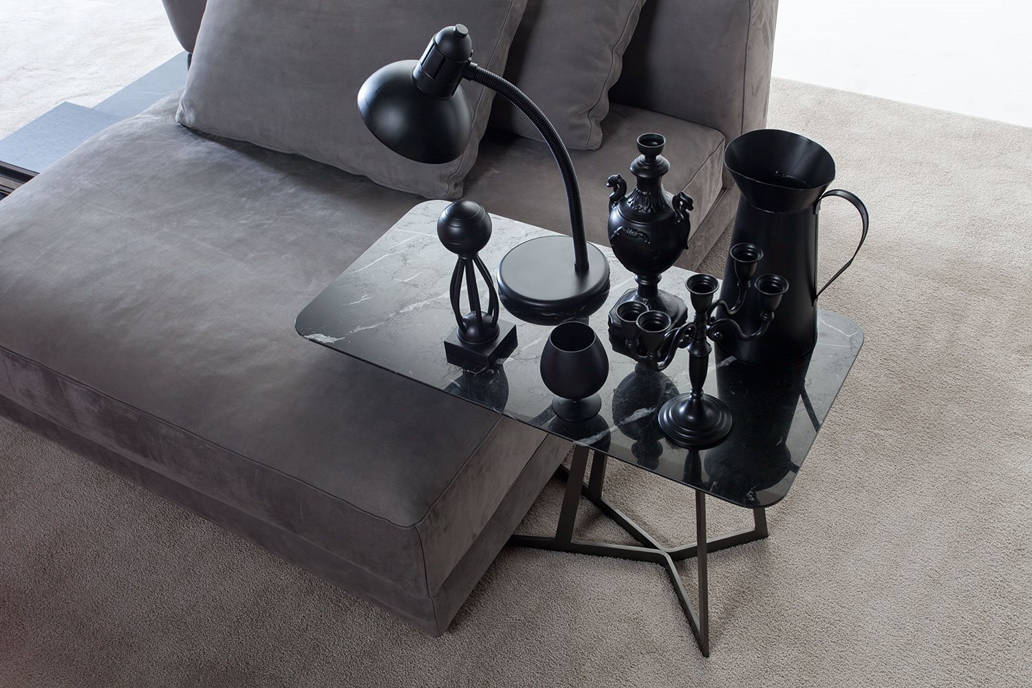 Small tables. Structure: in metal. Structure finishing: French Bronze or Gun Metal. Top: marble.