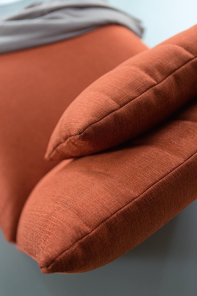 Bellavita is characterized by its soft and rounded shapes that evoke pillows, while the quilted seams on seats, backs and armrests give it a sleek minimalist touch. Highly versatile, its main feature is the great modularity: mix and match two back heights and seats with different widths to create an infinite range of combinations to be completed with poufs and armrests on the left or right. Looks like it’s floating thanks to its concealed feet. The range is completed by small armchairs and a bed available with different headboards.
