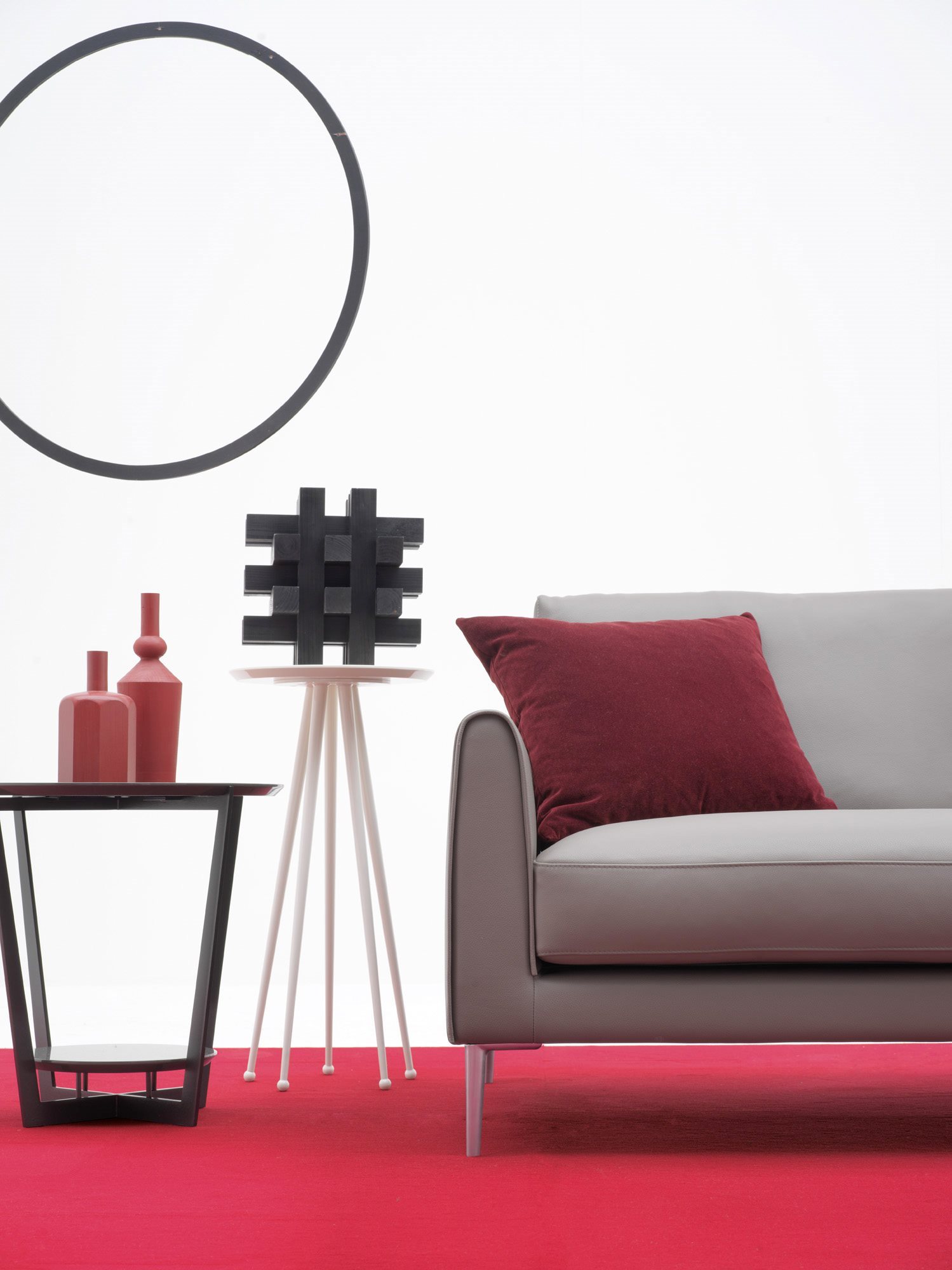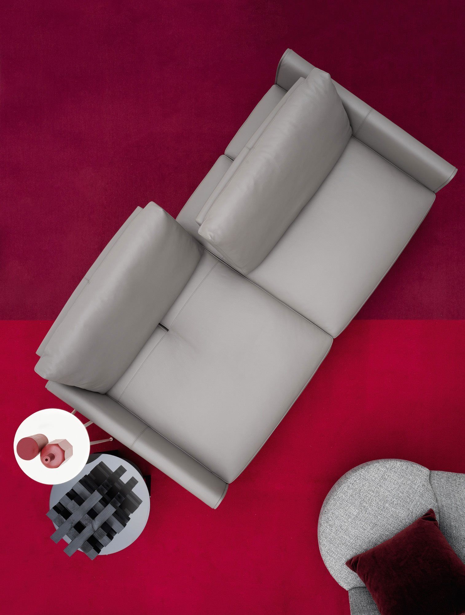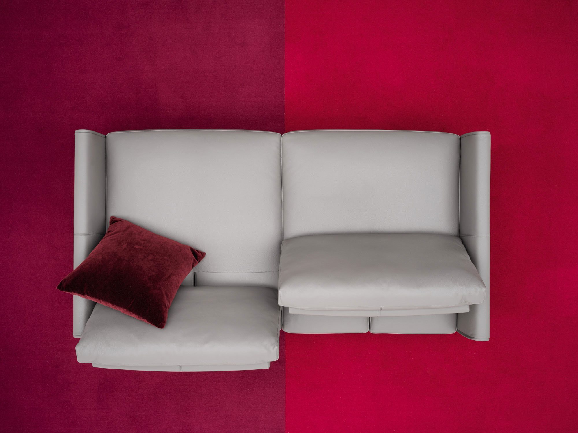 One of Vega sofa’s distinctive features is the flexibility of use combined with a modern design and its simple and contemporary lines. The collection’s characteristic element is the sliding mechanism incorporated in the backrest that allows you to choose between two different depths; one that is suitable for sitting while the other is ideal for relaxation. At the same time, the slender design of the feet, available in chrome and gunmetal grey version, along with a small armrest give the sofa a fresh and modern look. Composite elements with an inclined cut and chaise longue complete the seating system, allowing to create unusual and customized compositions for multiple uses.
