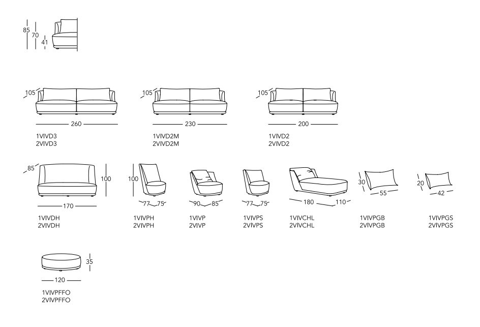 Sofas VIVIEN / GRACE / AUDREY are characterized by rounded and romantic lines. They are the result of a perfect combination between a classic and contemporary style. The high smooth back cushions VIVIEN and the special back cushions with diamond sewing of the models AUDREY and GRACE make them unique pieces, with three different souls able to satisfy the needs of the most demanding interior designers.