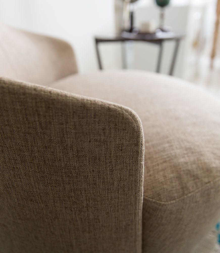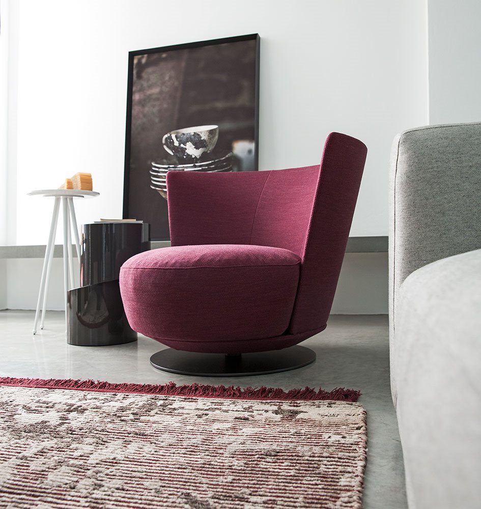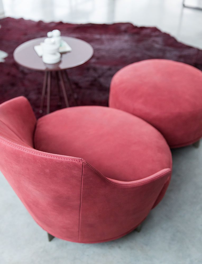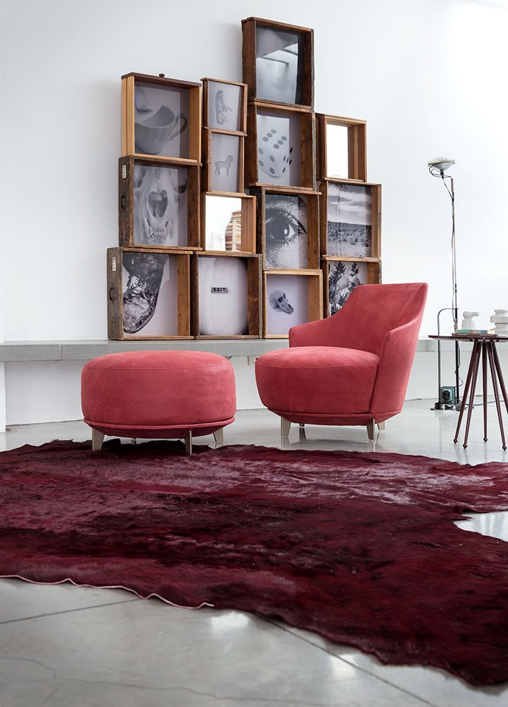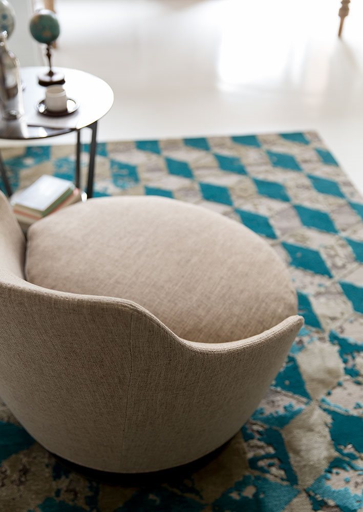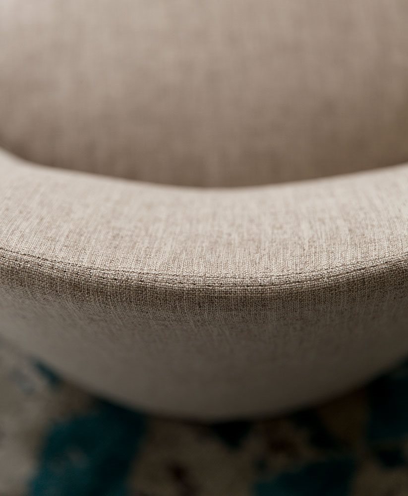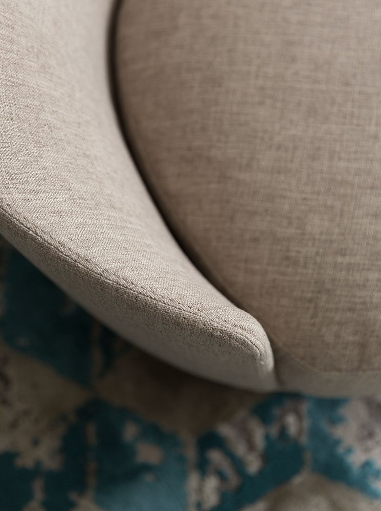 Poltrona. Struttura portante: multistrato, massello di legno. Imbottiture: Schienale in poliuretano espanso (densità 21 Kg/mc). Seduta in piuma d’oca con inserto in poliuretano espanso (densità 40 Kg/mc). Piedino: in metallo (finiture French Bronze o Gun Metal).