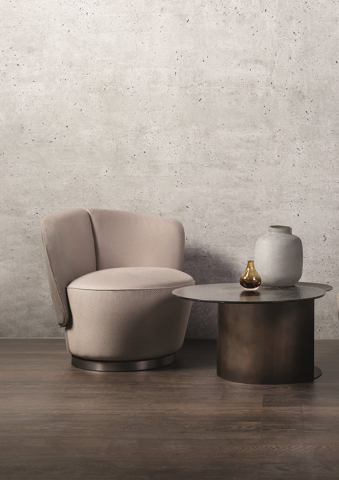 With its soft and enveloping shapes, the Yvonne armchair best represents a range characterized by a sophisticated, original design.