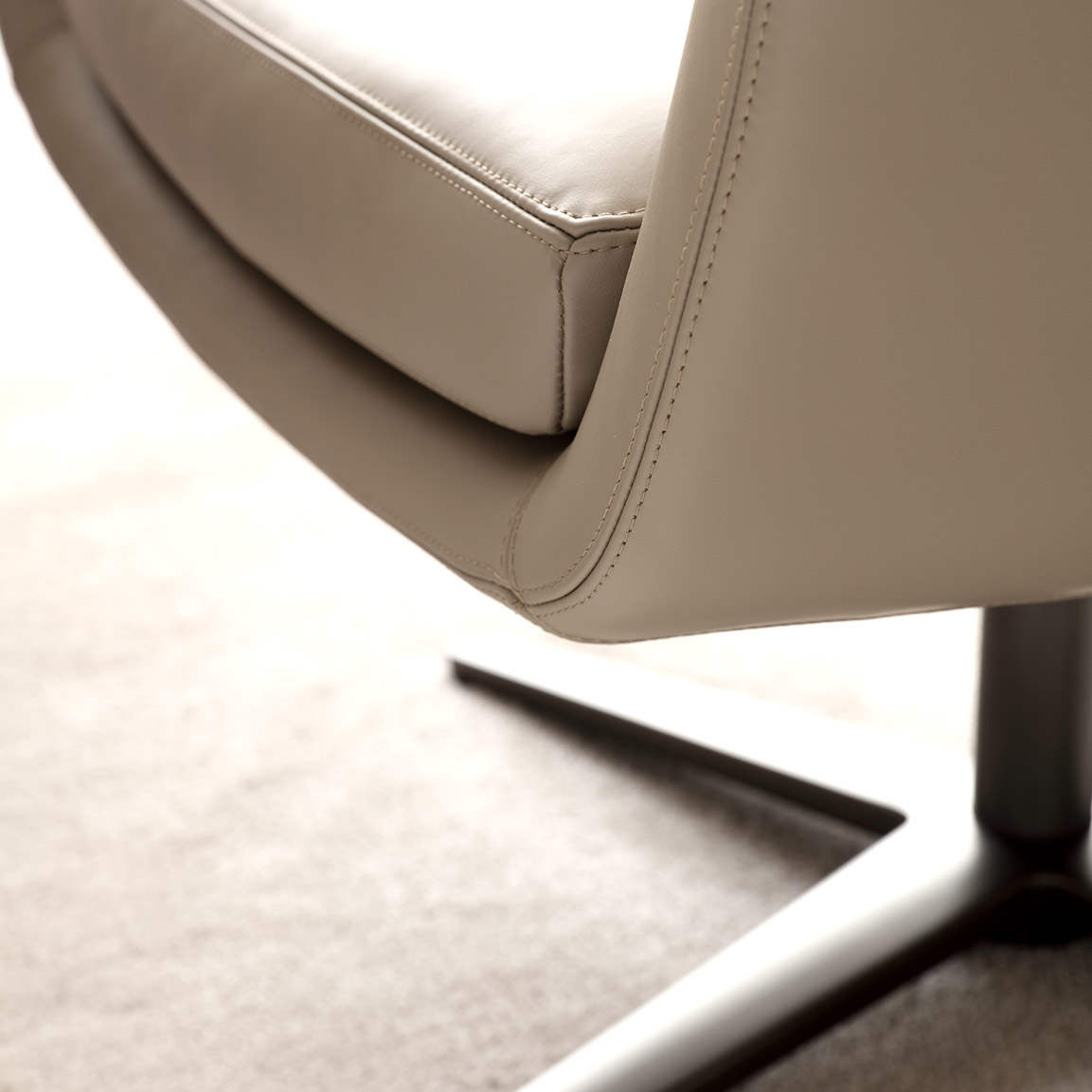 An elegant armchair with a balanced design that interacts with different styles and worlds.