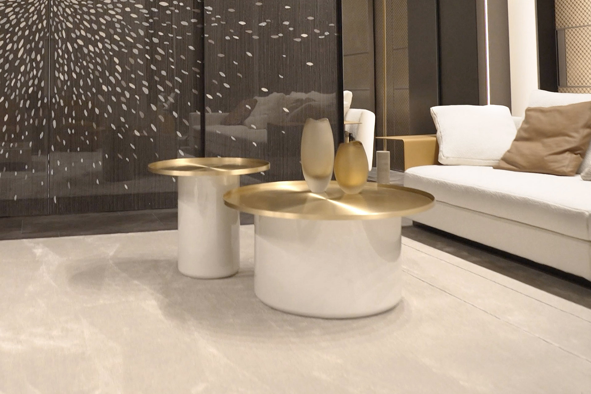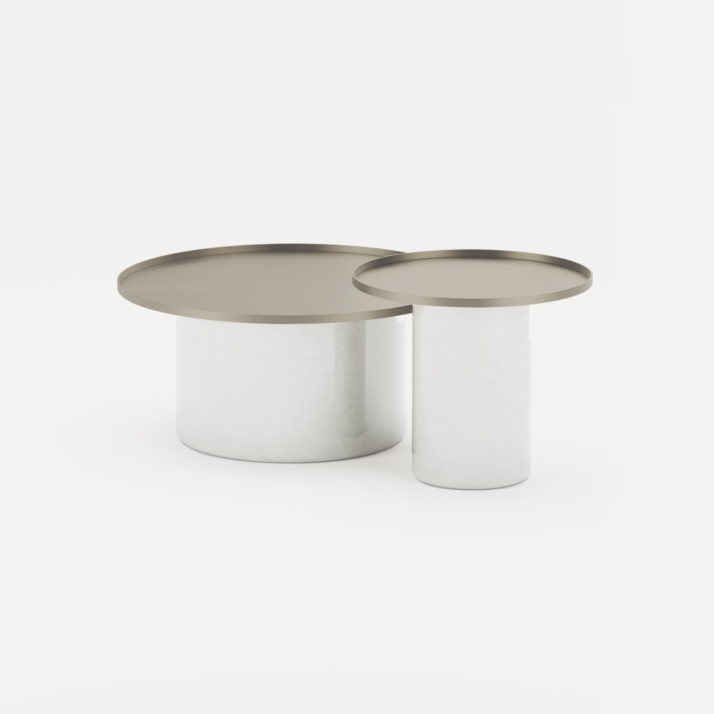 The contrast between the softness of the shapes that refer to the circle and the solidity of the brass tray, makes Tray a complement of simultaneously impact and light in its image.