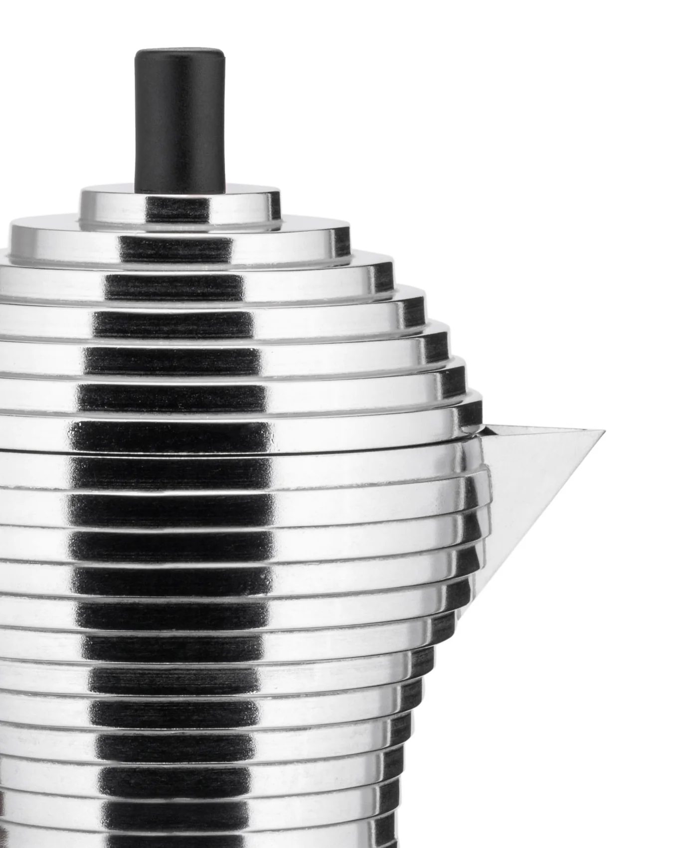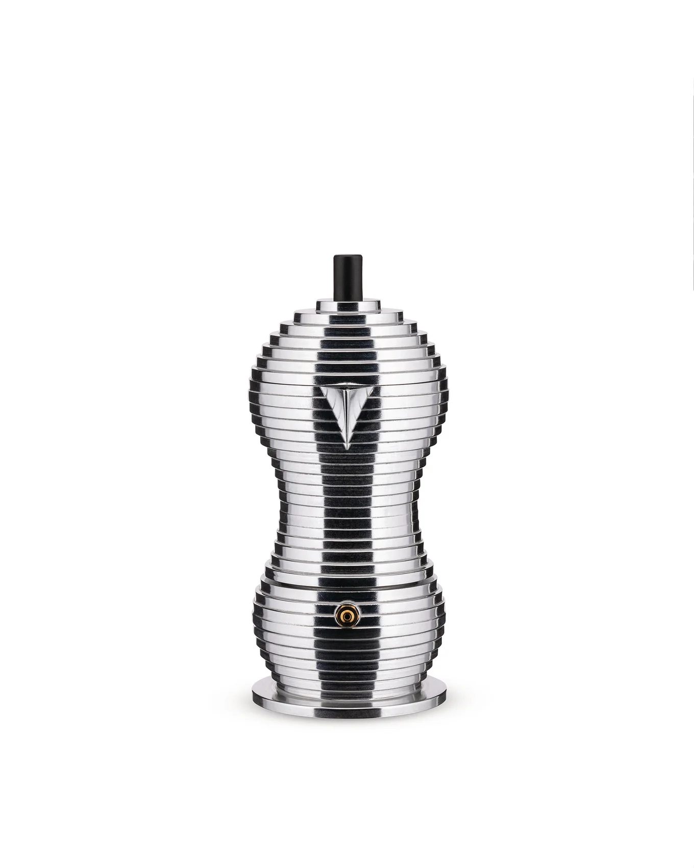 A revolutionary moka that combines the technology developed byillycaffè and the design experience of Alessi. Designed by Michelede Lucchi, Pulcina encapsulates a small but substantial designinnovation that stops dispensing the drink at the right time beforethe coffee gets a bitter aftertaste. This helps to enhance the fulland rich aroma of this drink.The spout, which recalls a chick's beak(hence the name of the coffee maker) allows it to perfectly stop thedrop.
