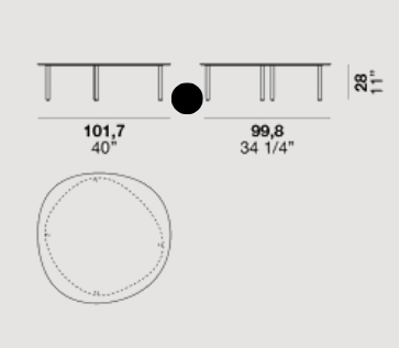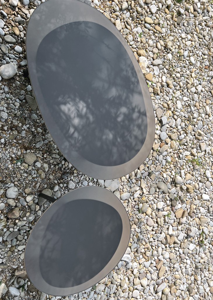 Tsuki is a range of occasional tables with a metal frame, tempered glass top and round satin-finish edge.