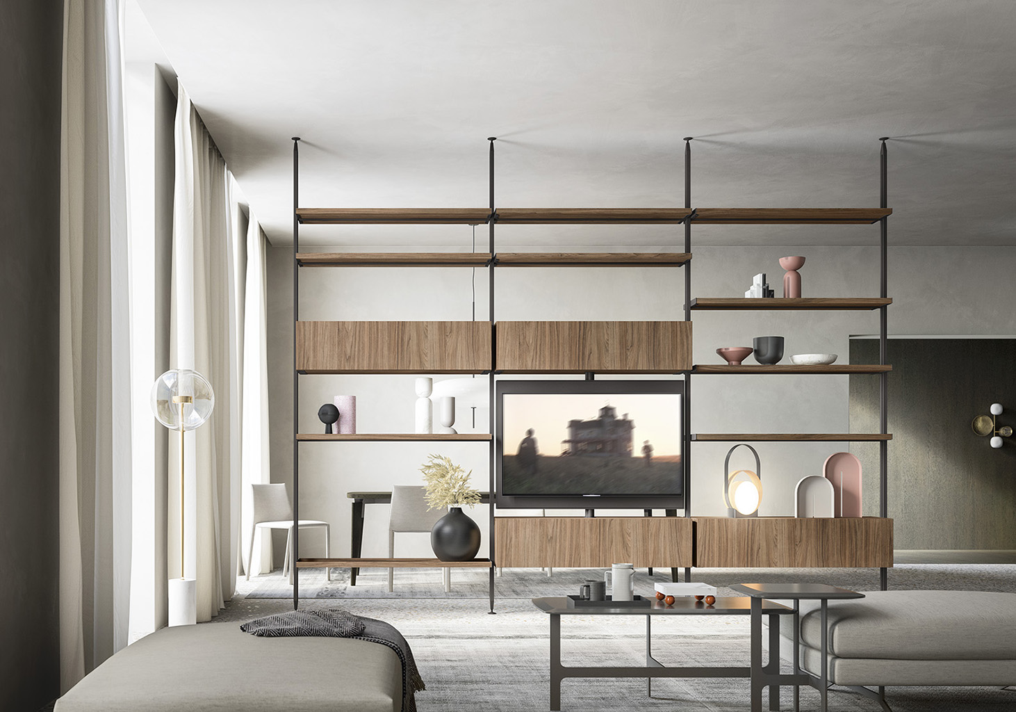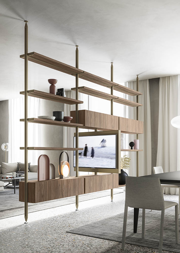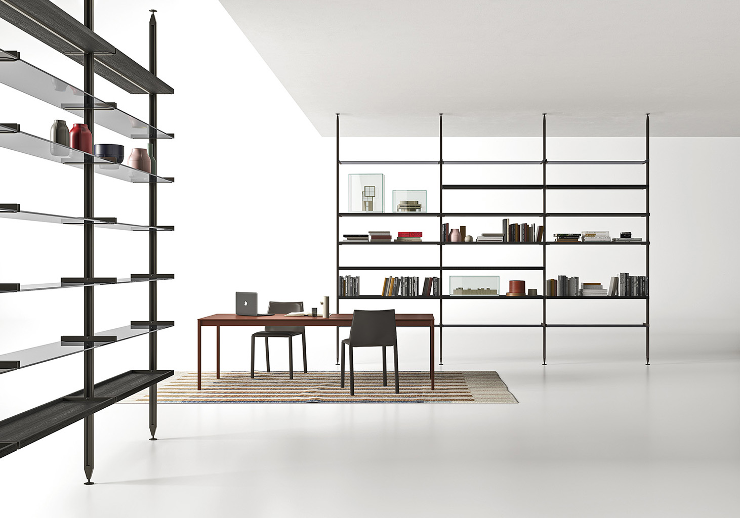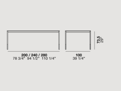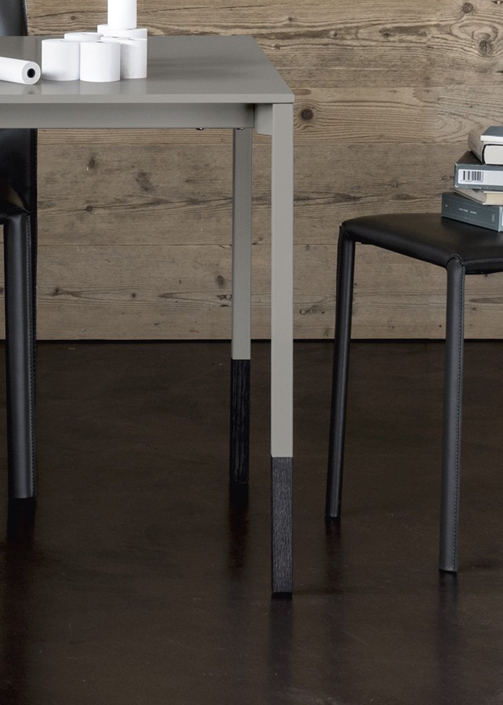 The Aliante table has a metal frame and can be square or rectangular. It comes in a fixed or extendable version. This table’s defining feature is its wooden “socks", which are available in various finishes to go with the lacquered upper part of the table, according to personal taste.