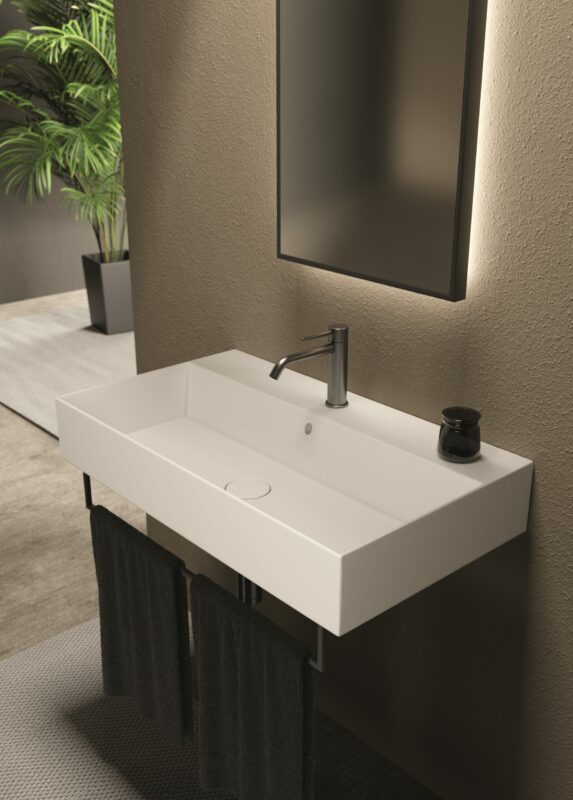 Functionality and practicality. Washbasins particularly suitable for projects for limited spaces and for bathrooms that, despite their size, do not want to sacrifice design.