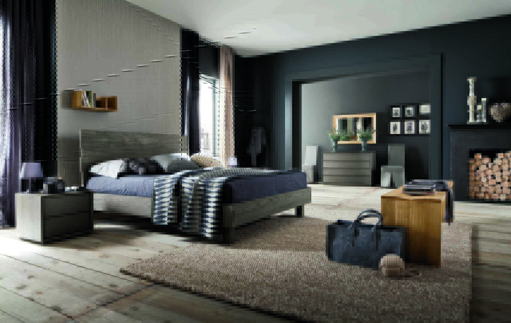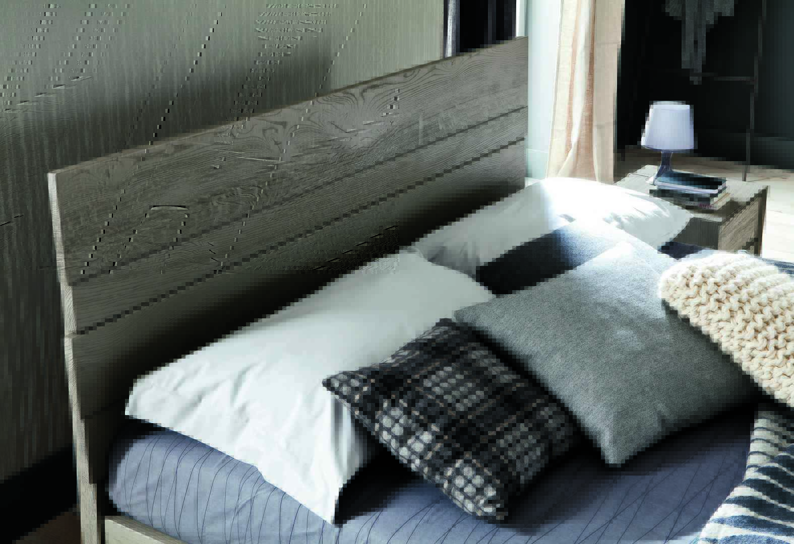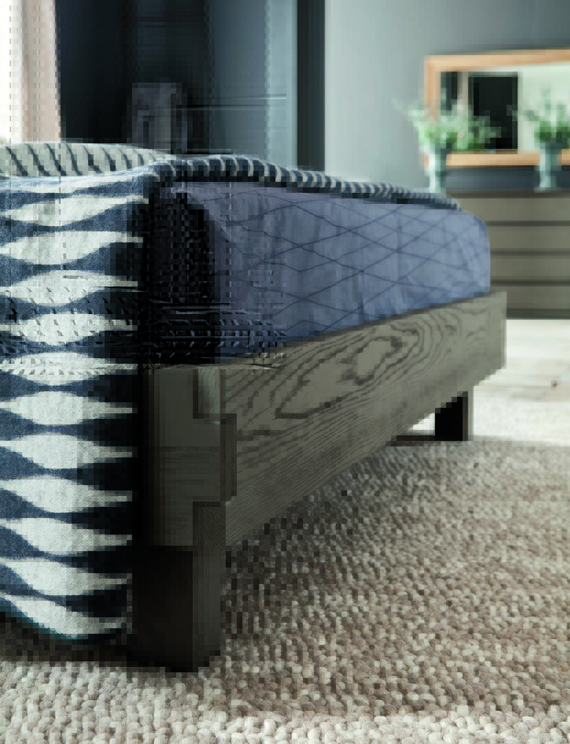 Kenzo bed in solid oak with Visone sabbiato finish.