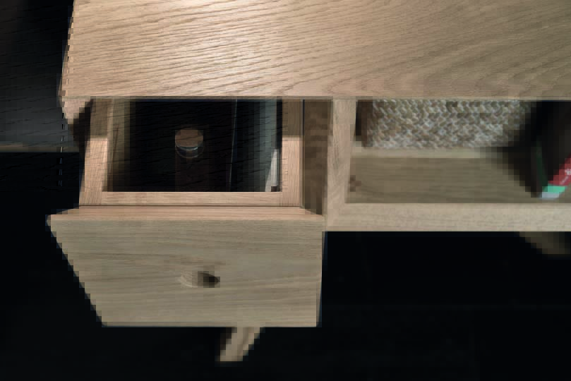 Bed Pegaso with padded headboard and wooden bed frame type 3, in alaska solid oak finish.