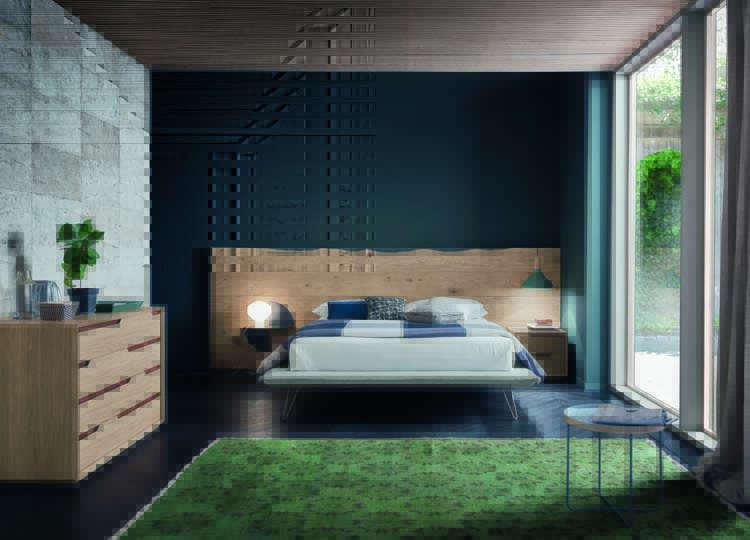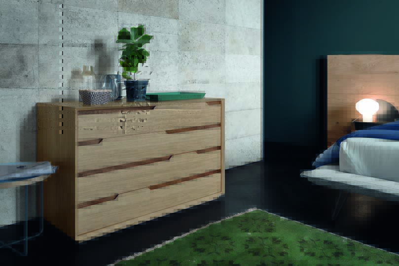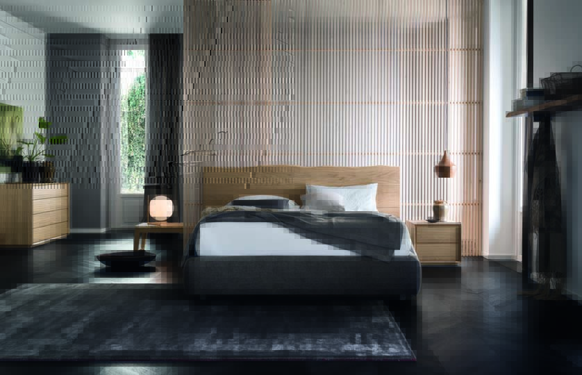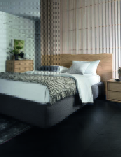 The headboard consists of 4 joined planks of brushed oak featuring strong colour differencs.