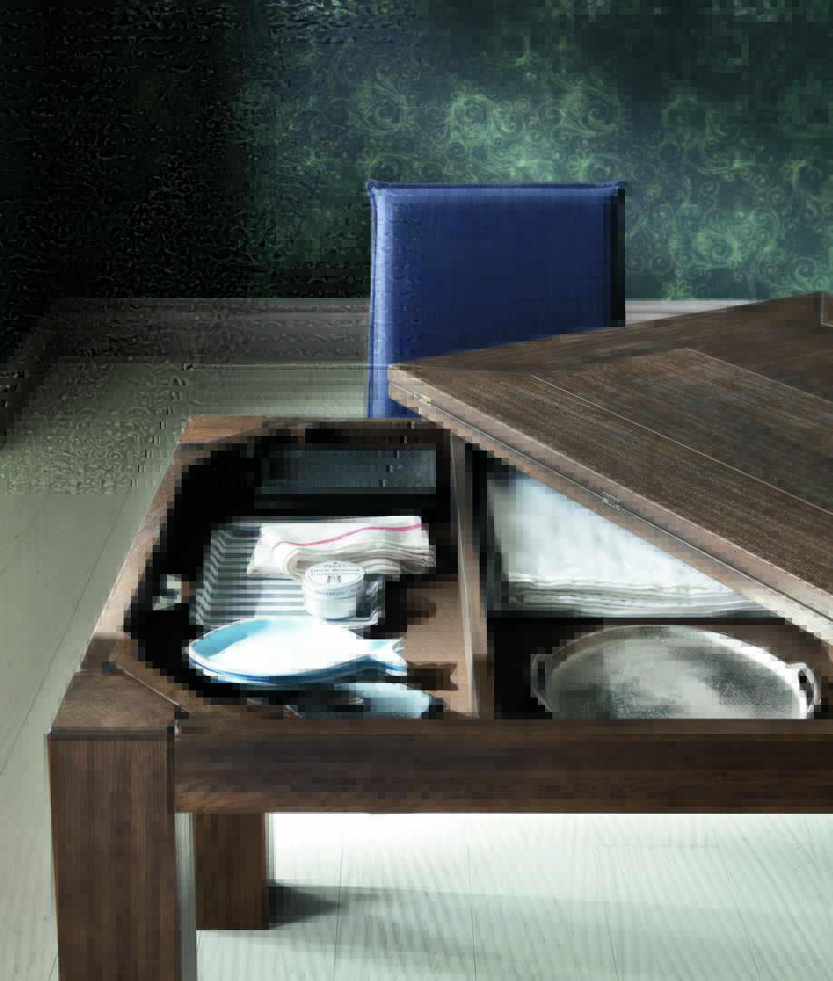 Table Boston with swivel mechanism, proposed in Grigio solid oak finishes.