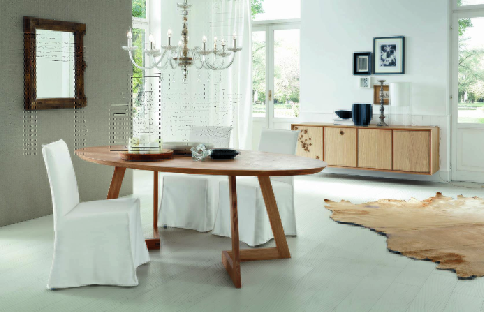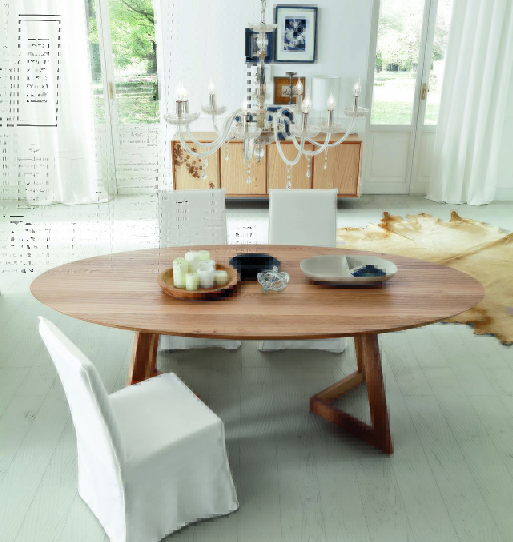 Toledo table in 40-mm thick solid oak top, with 33° angled upper edges.