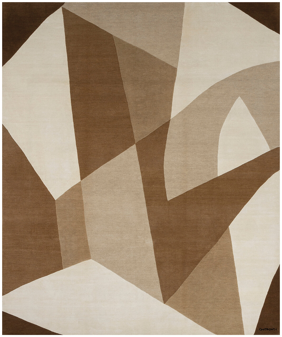 Le forme disegnate da Gio Ponti diventano sfaccettature di diamanti che riflettono e rompono la luce per creare strati di forme trasparenti ed angolari per un tappeto moderno e sofisticato. Capolavori in lana tibetana e seta naturale, complementi che portano nelle case un’armonia e un senso della misura che nasce dall’equilibrio tra disegno, forma e colore.