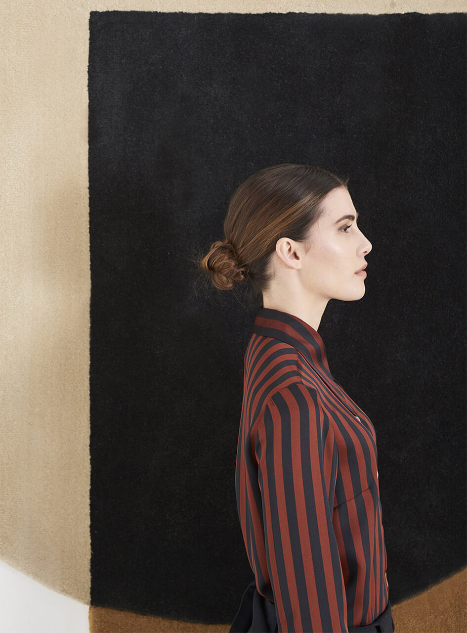 Interpreti ideali della linea Contemporary, la collezione Teorema disegnata da Elisa Ossino suggerisce un approccio grafico e concettuale al tema tappeto. Protagonista del progetto la ricerca della tridimensionalità, suggerita dalla precisa combinazione di figure geometriche primarie. Contrappunti e continui riecheggiamenti tra rotondità e angoli, curve e linee rette suggeriscono inedite suggestioni di sovrapposizione e trasparenza. Concepiti in nuance di grigi e colori terra, i tappeti Teorema sono realizzati in India con filati in lana e tencel, esaltati dal vello taftato a mano cesellato su due livelli.