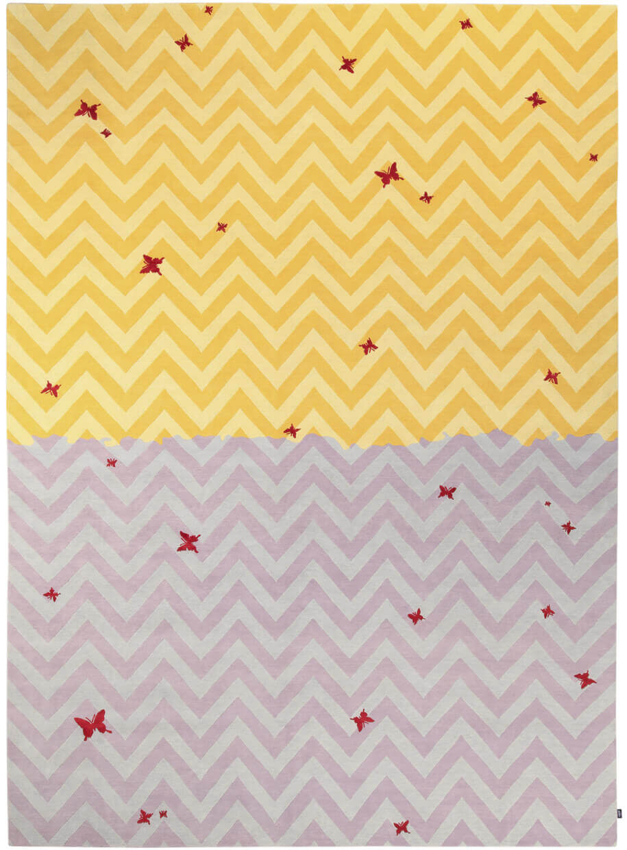 “The inspiration for this design was taken from a previous piece I created called ‘Mandala’; this carpet design represents a section of that larger work. Traditionally, the term Mandala refers to the colored sand “paintings” created by Tibetan monks. In this form of painting, the significance lies in the process of creating the piece, and less value is placed on the final result; after the piece is completed, the monks crush the painting stone and sprinkle the dust on the river. In other words, the meditative process of painting, not the painting itself, is the central focus of the art form. In my previous ‘Mandala’ work, I simplified the image of a Mandala painting and reproduced it as an installation work by recreating the painting’s imagery using products such as candy, jelly, cookies, cotton swabs and matchsticks: all items that we can find and buy easily at the supermarket. This carpet design is a continued exploration of that concept.”