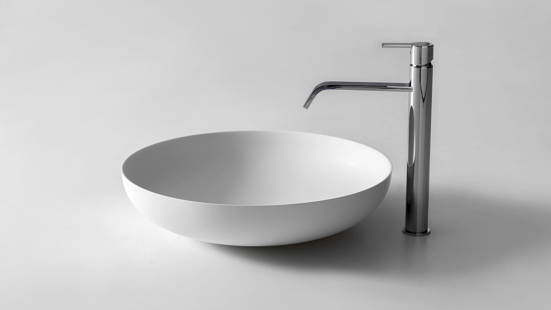 Round top mount Flumood? sink, complete with drain pipe fitting and open plug, that can be lacquered externally.