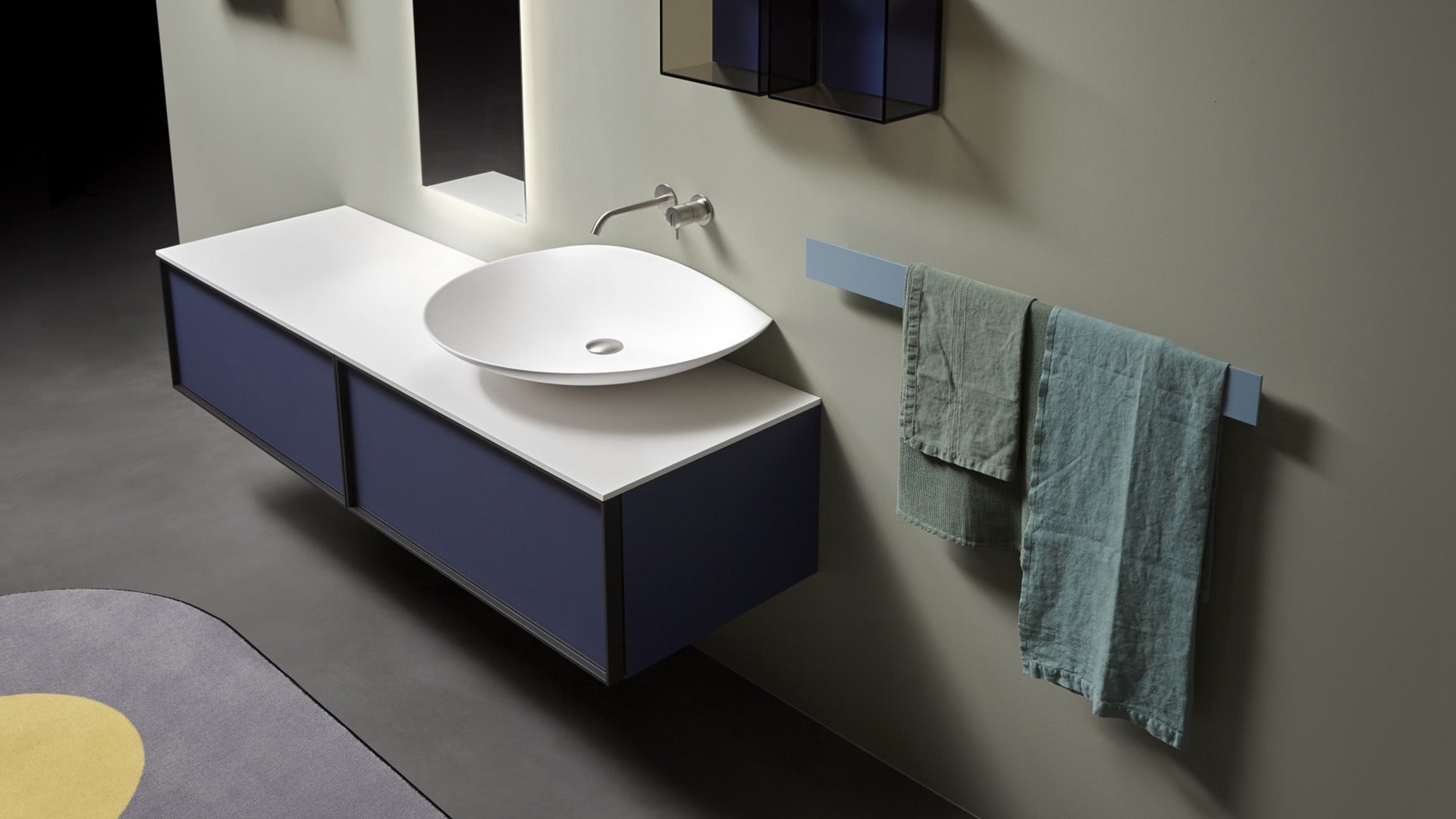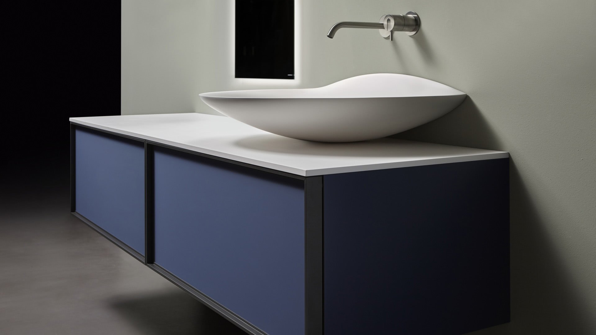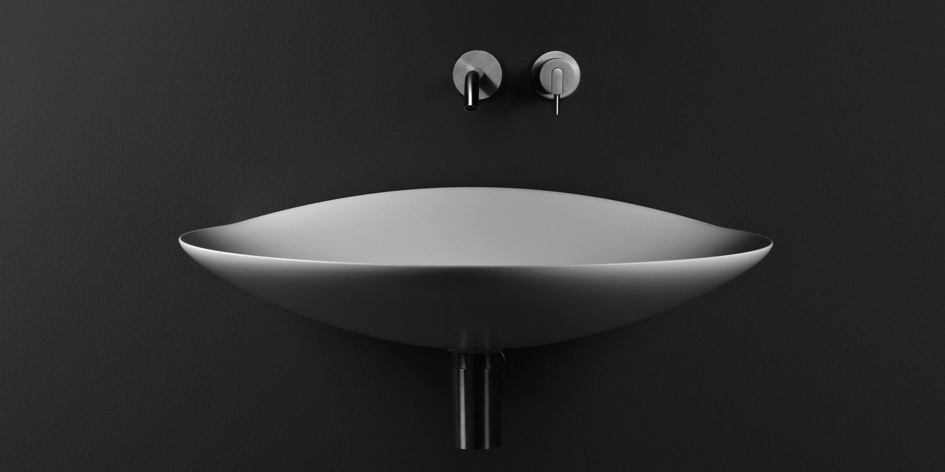 Oval top wall mounted Flumood sink, complete with drain pipe fitting and