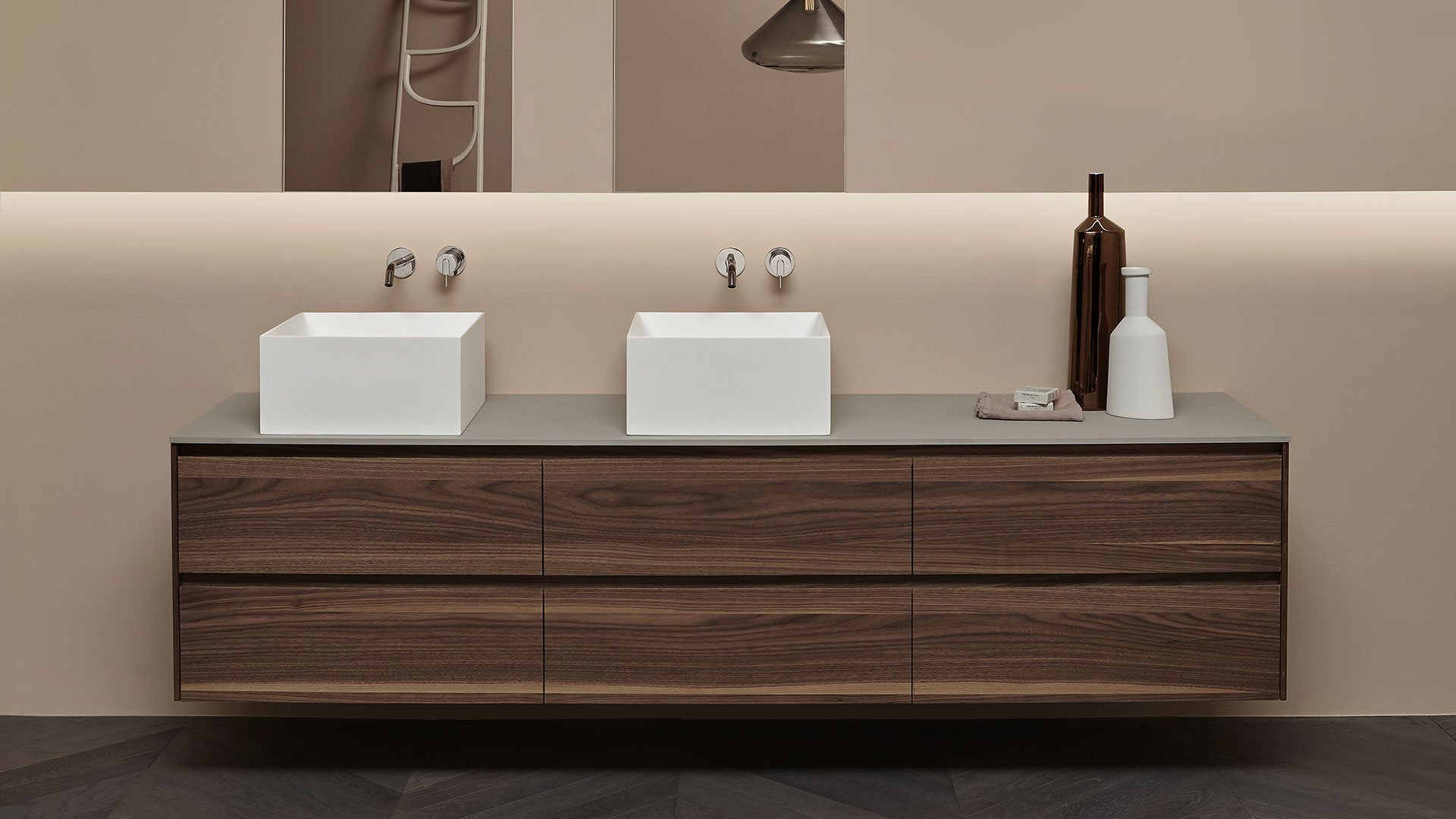 Square top or wall mount Flumood sink, complete with drain pipe fitting and open plug. Can be lacquered externally.