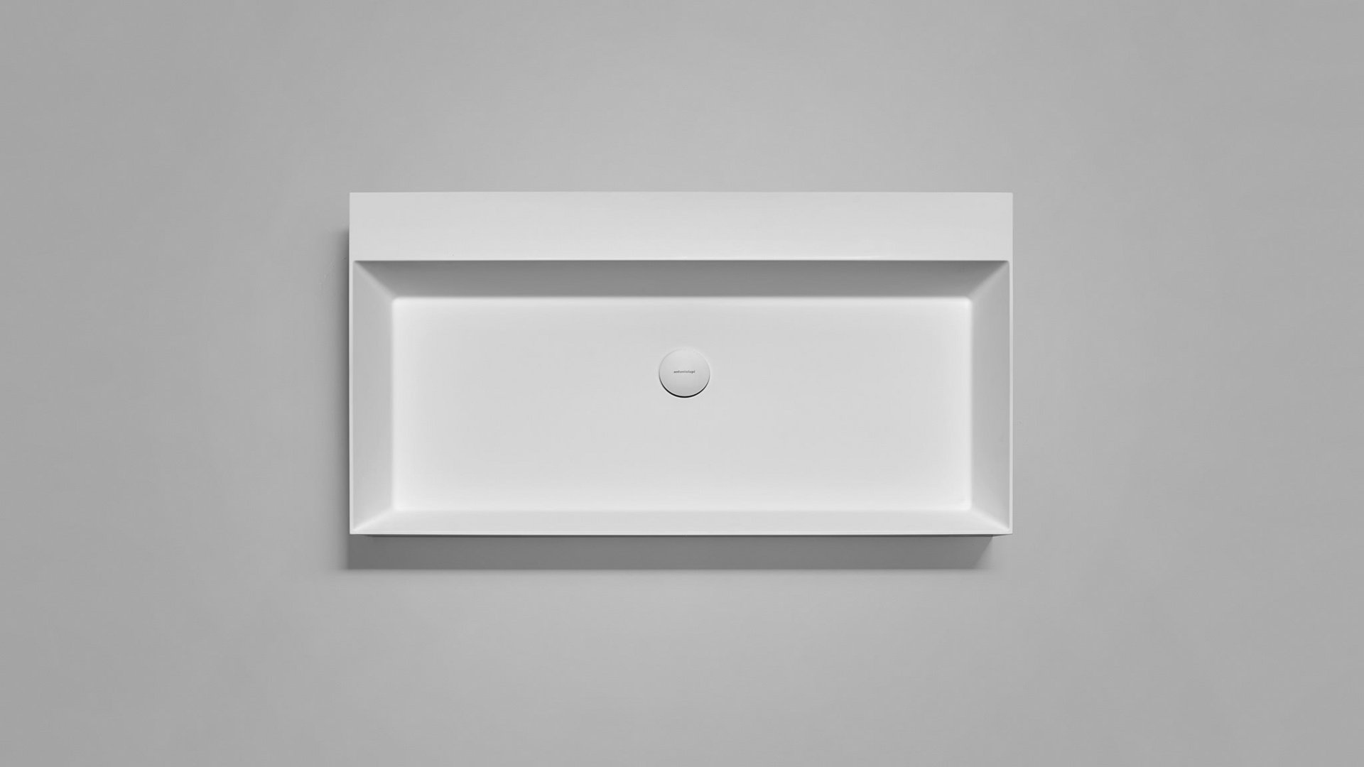 Rectangular top mount or wall mount white or colored Flumood sink complete with drain pipe fifitting and open plug.