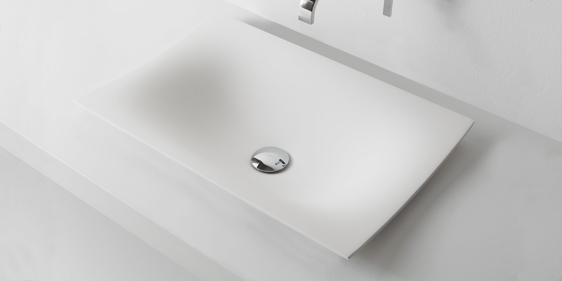Rectangular encased Ceramilux sink, complete with drain pipe fitting and open plug.