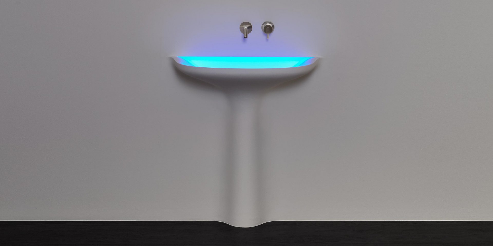 Encased Corian sink with or without LED lighting, complete with inspectable drain, trap and flexible hose.