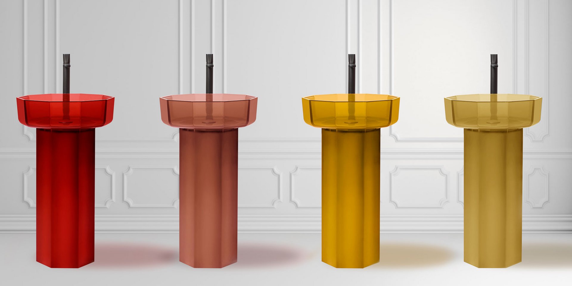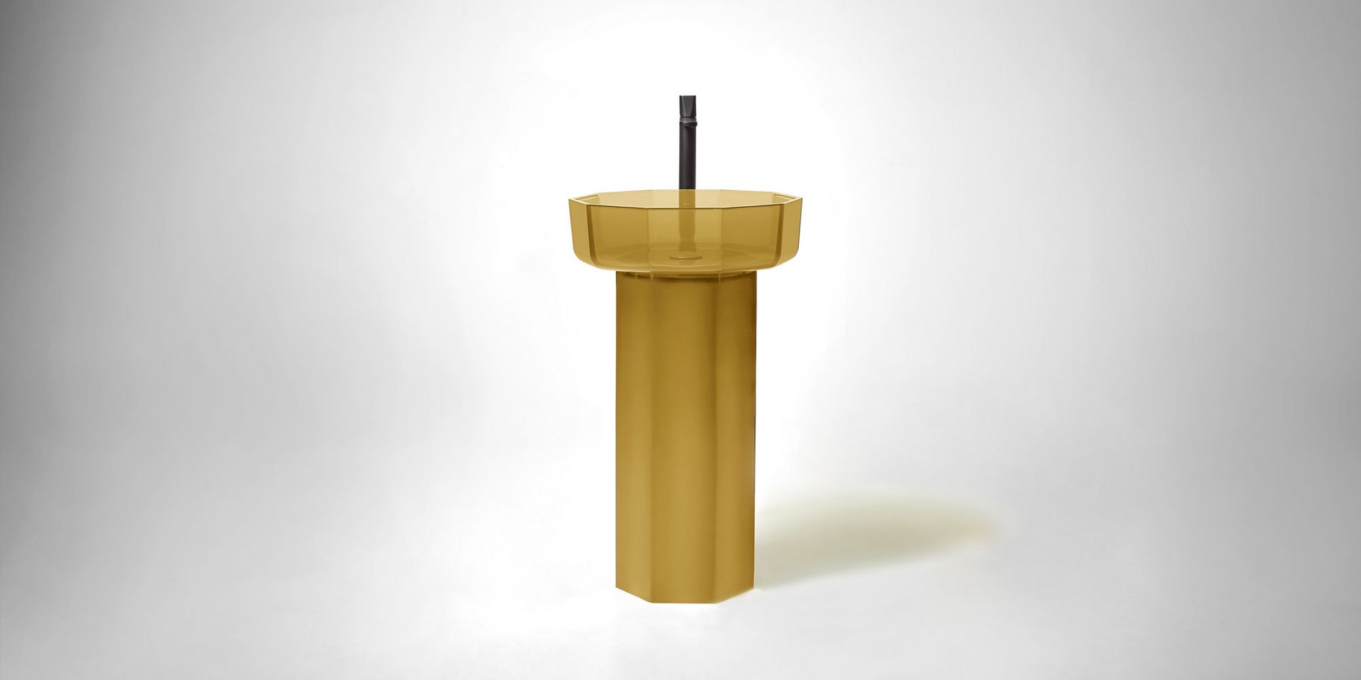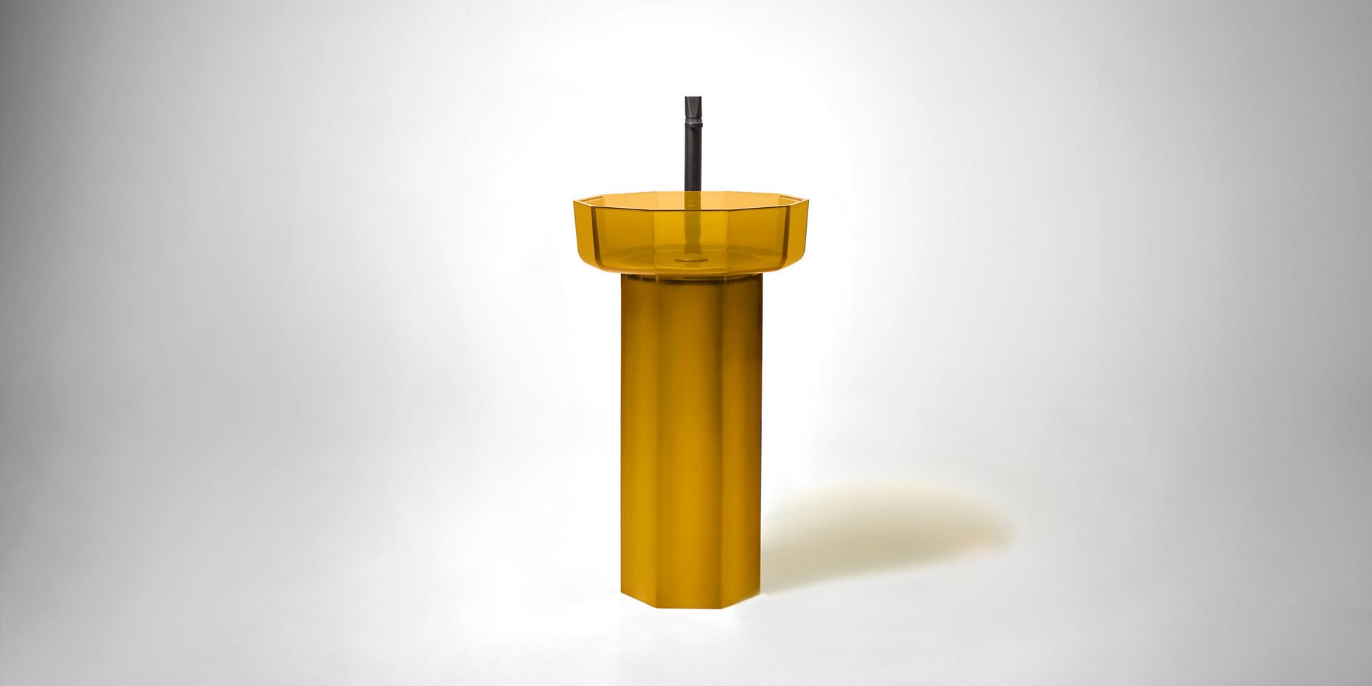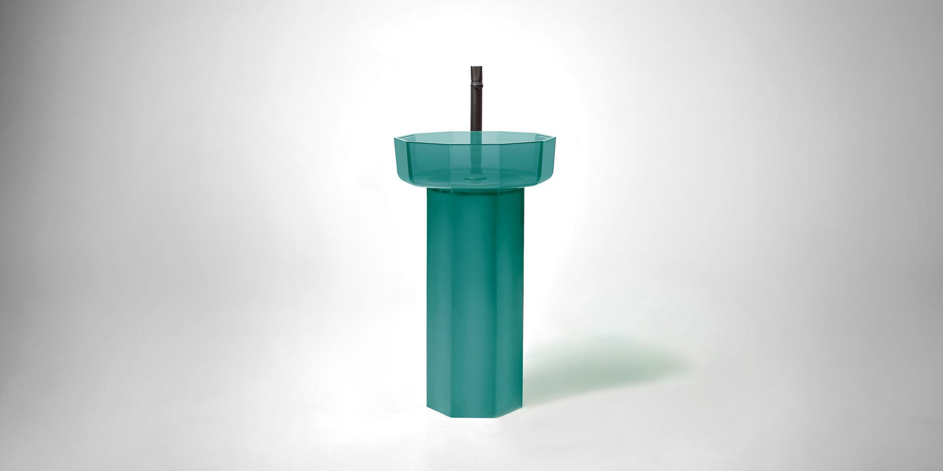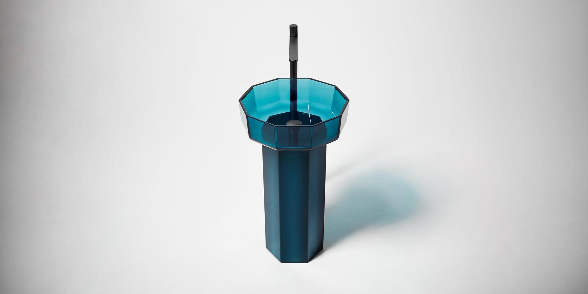 Decagonal shape sink in Cristalmood available in various colors as per our color chart, to be used top mount or combined with base Art. OPALE20 or Art. OPALE21, complete with drain pipe fitting and open plug.