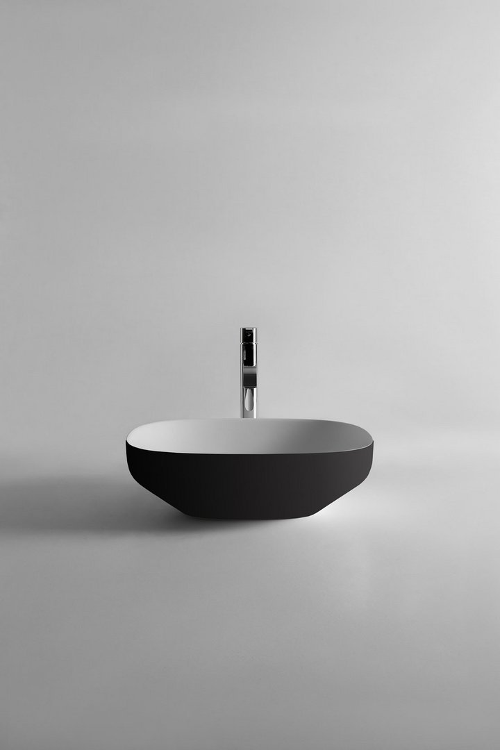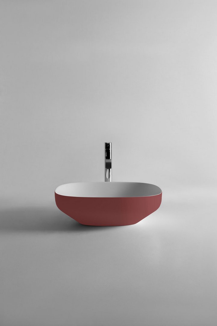 Oval top mount Flumood? sink complete with drain pipe fitting and open plug that can be lacquered externally.