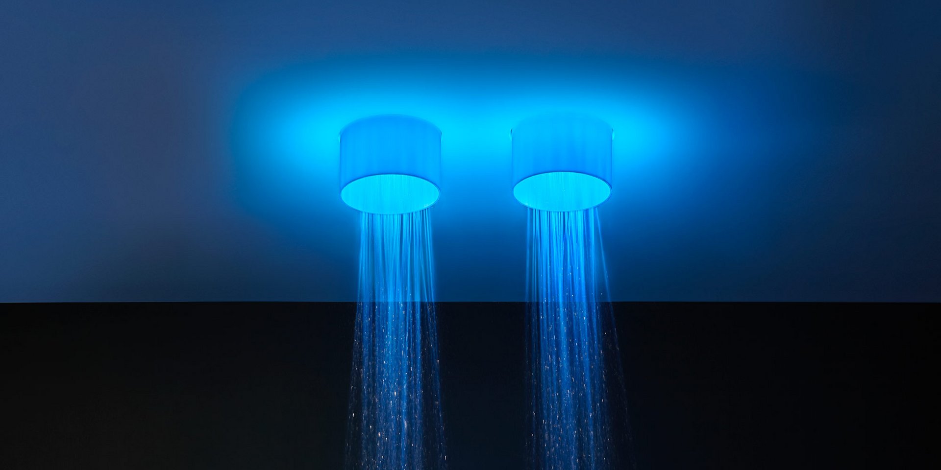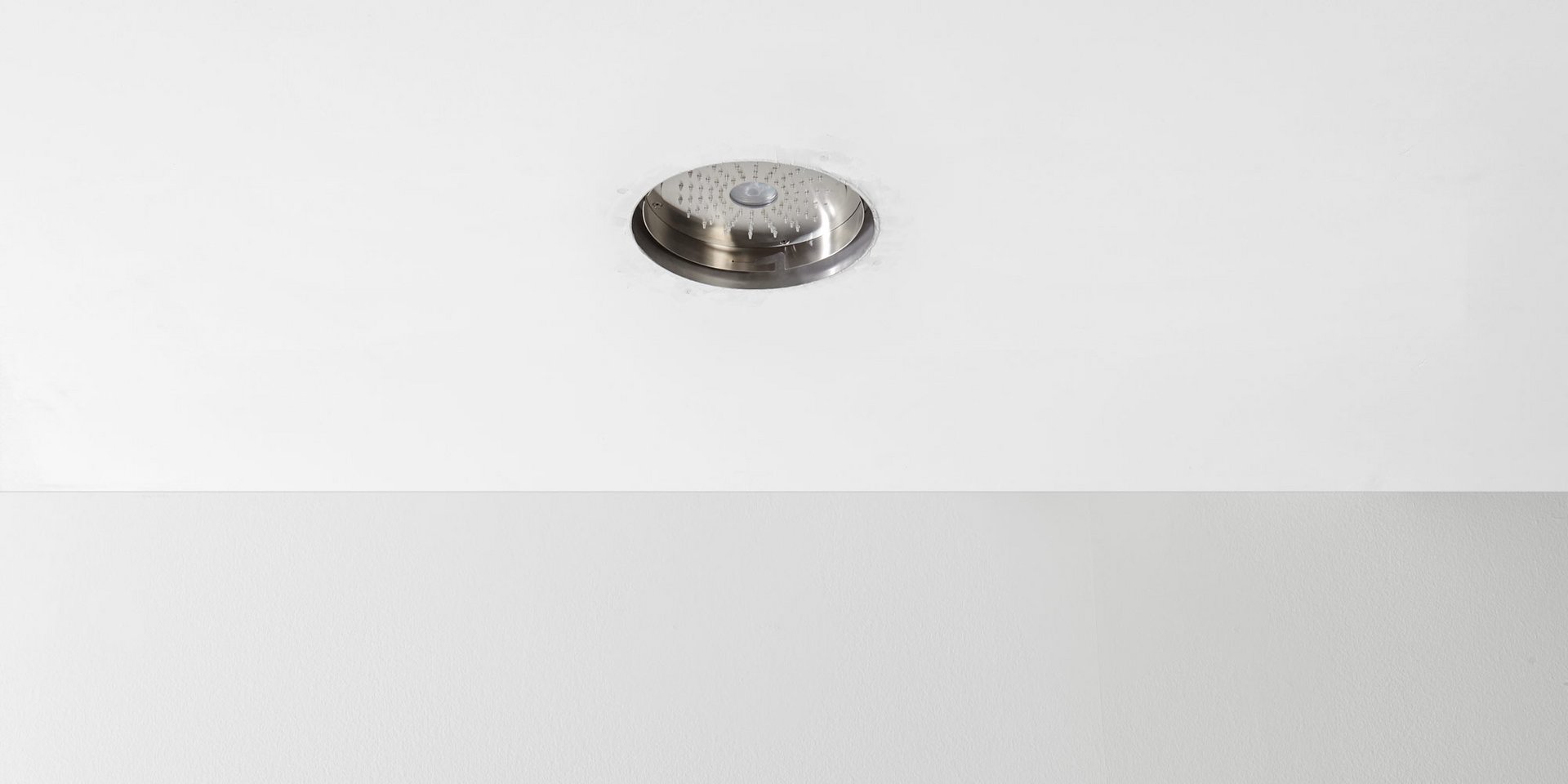 Ceiling mounted shower head in stainless steel AISI 304, complete with diffuser in opal acrylic and LED lighting RGB including waterproof remote control.
