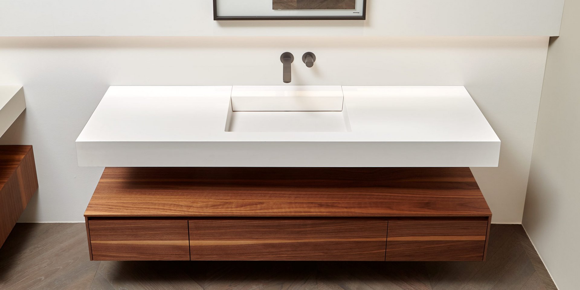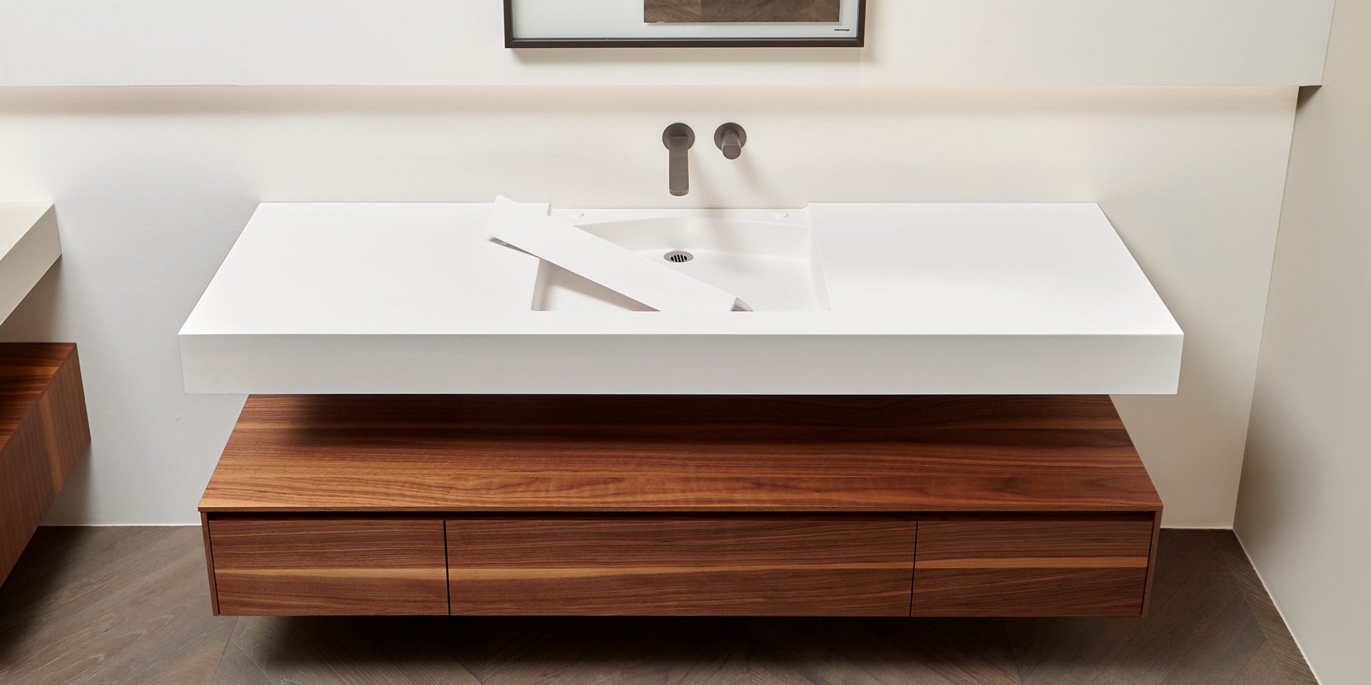 Top with integrated sink in Flumood12 mm thick, complete with drain pipe fitting and open plug
