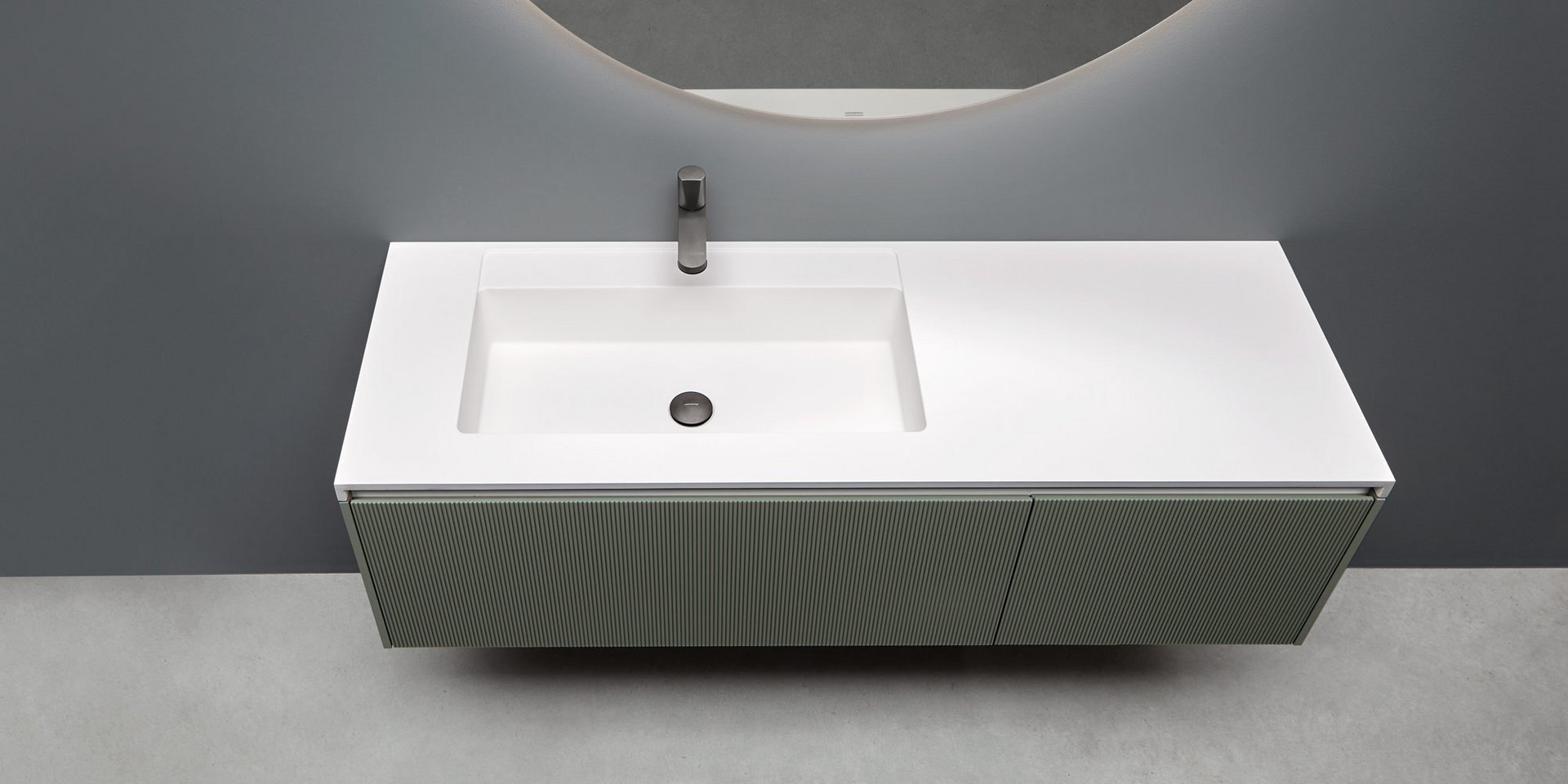 Top with integrated sink in Flumood? Satin finish, 12 mm thick, complete with drain pipe fitting and open plug.