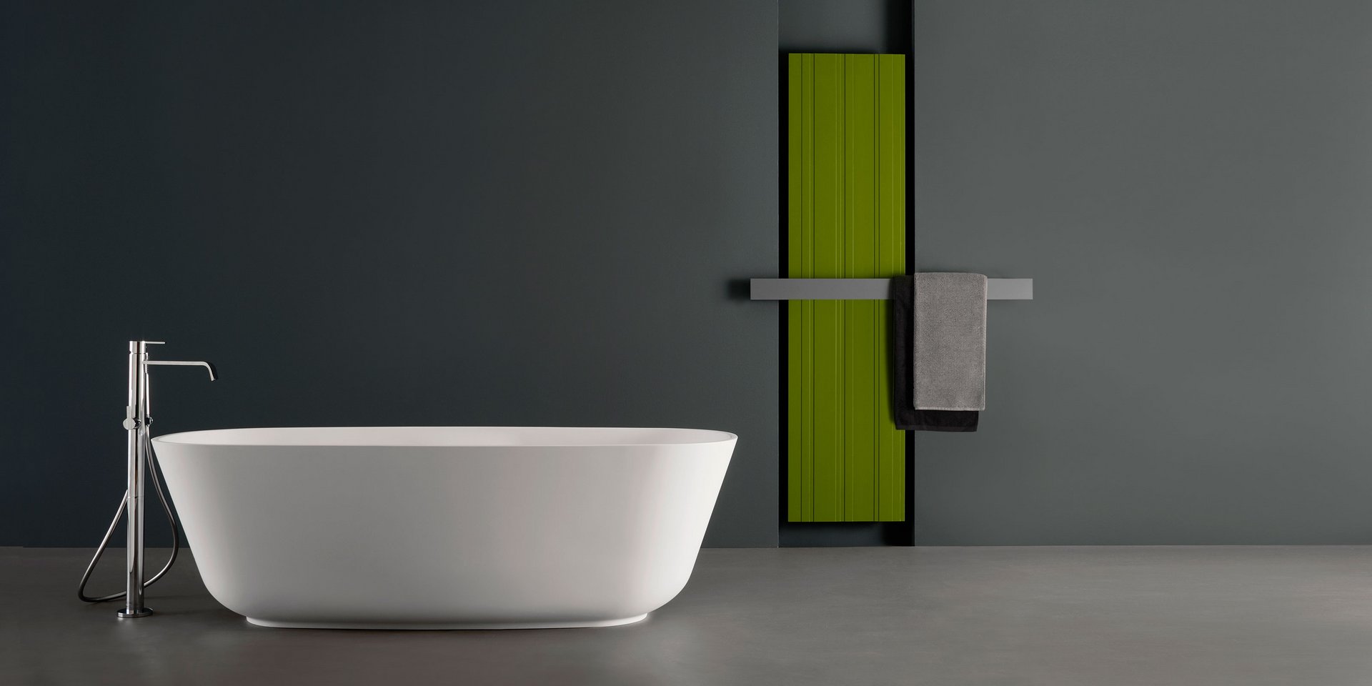 Aluminium designer radiator, combined water/electric version, matt white RAL 9010 or lacquered embossed as per our colour chart.
