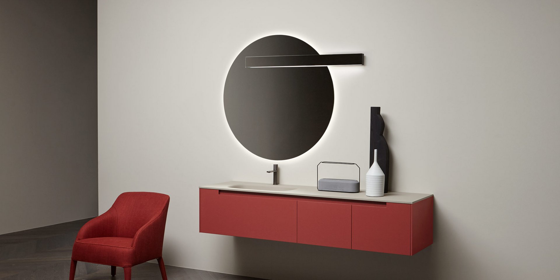 Polished edge mirror 5 mm thick with white led lighting, complete with frame and lamp LUCENTE, right or left hand version.