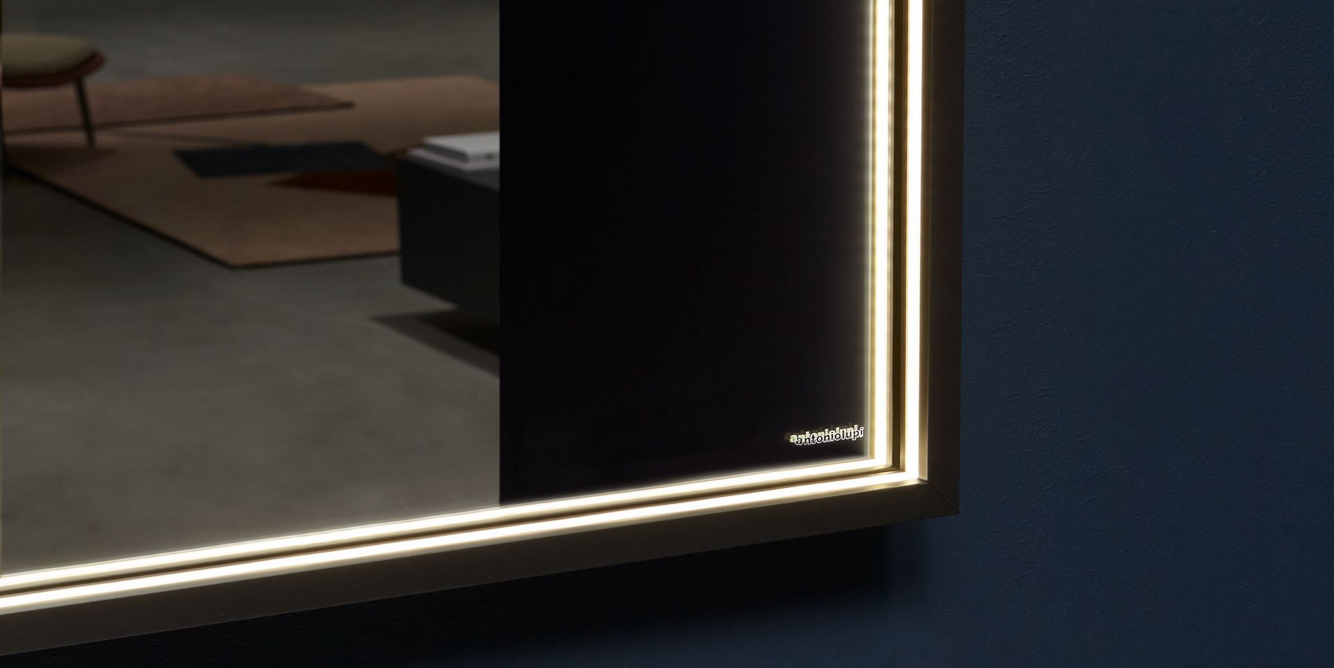 Horizontal or vertical mirror 4 mm thick with bronze aluminum frame and white led lighting.