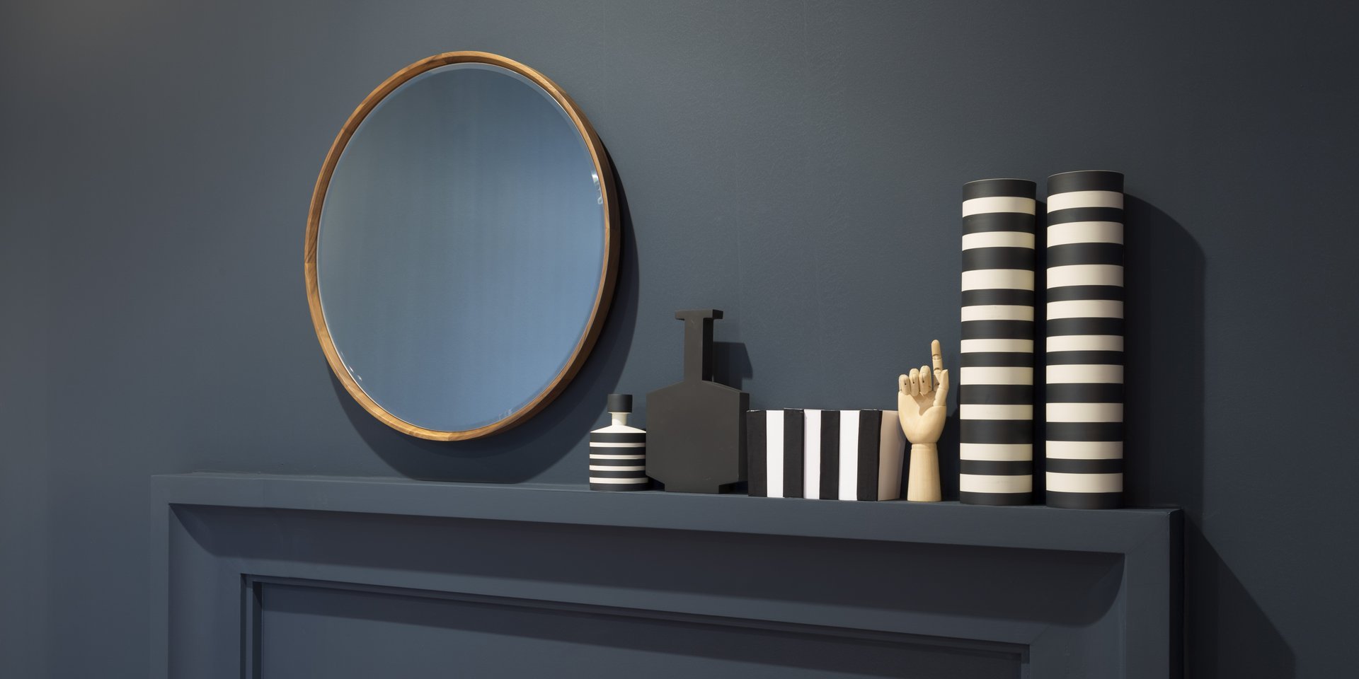 Round beveled mirror with solid wood frame