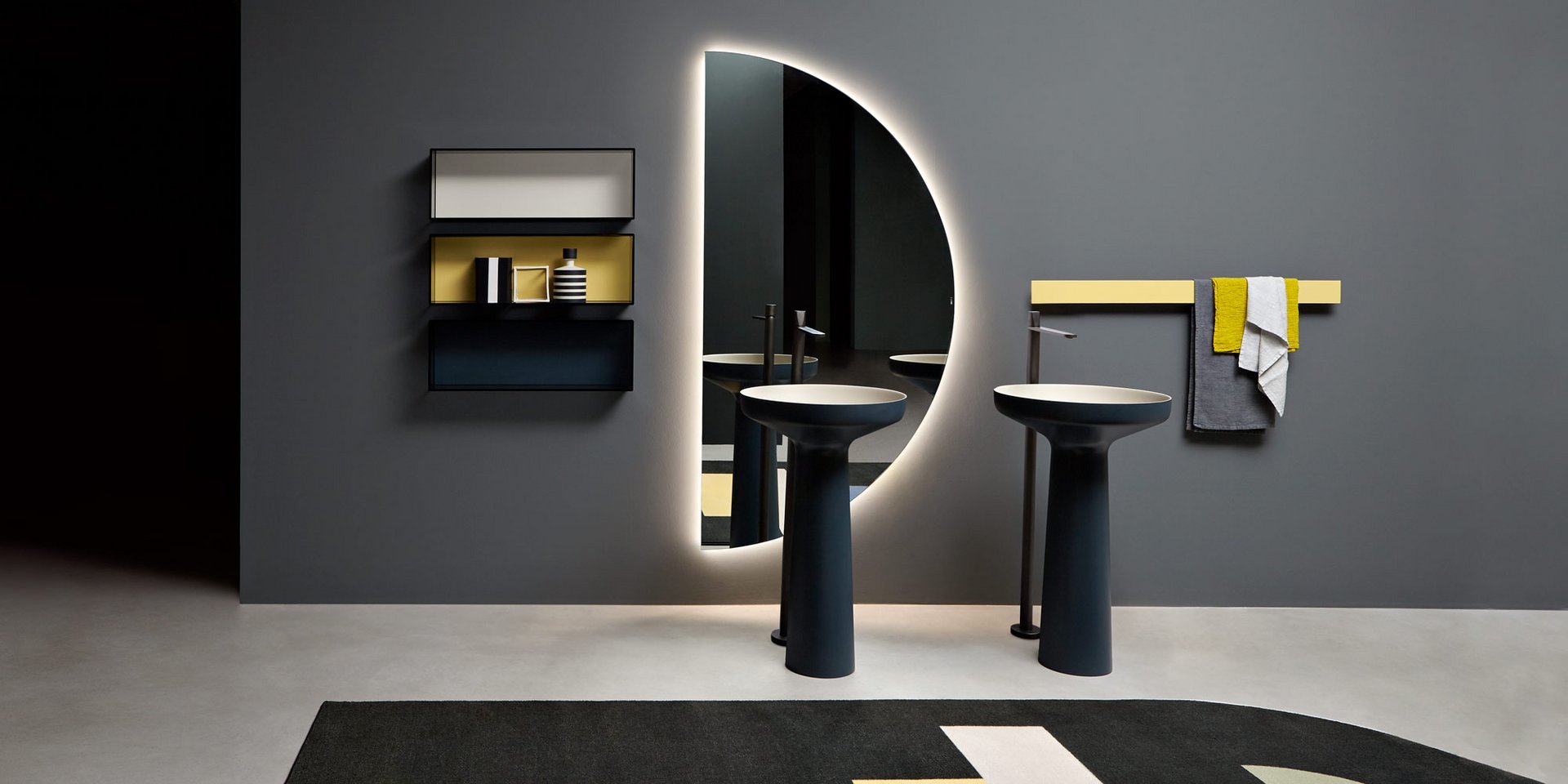 Reversable right- or left-hand polished edge mirror 5 mm thick with white led lighting, complete with black frame.