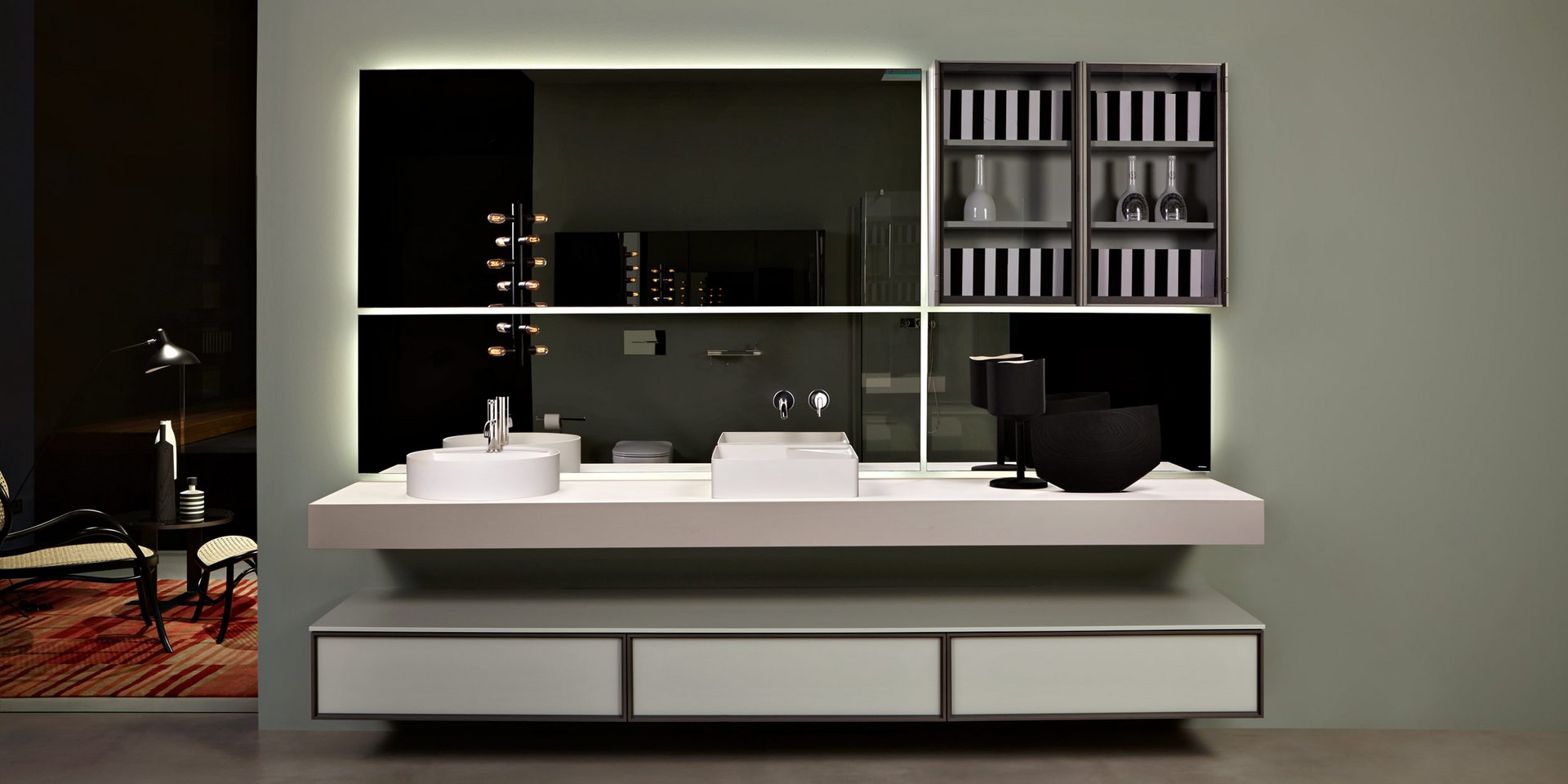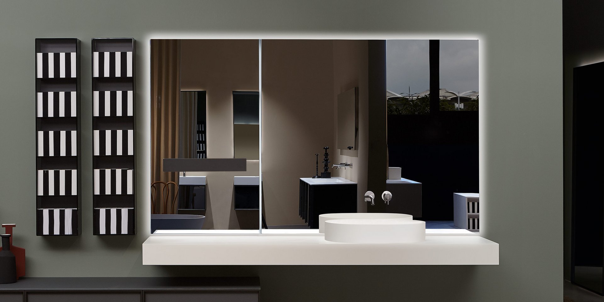 Polished edge mirror complete with frame and white led lighting prepared for concealed valves Art. SP201INSA,