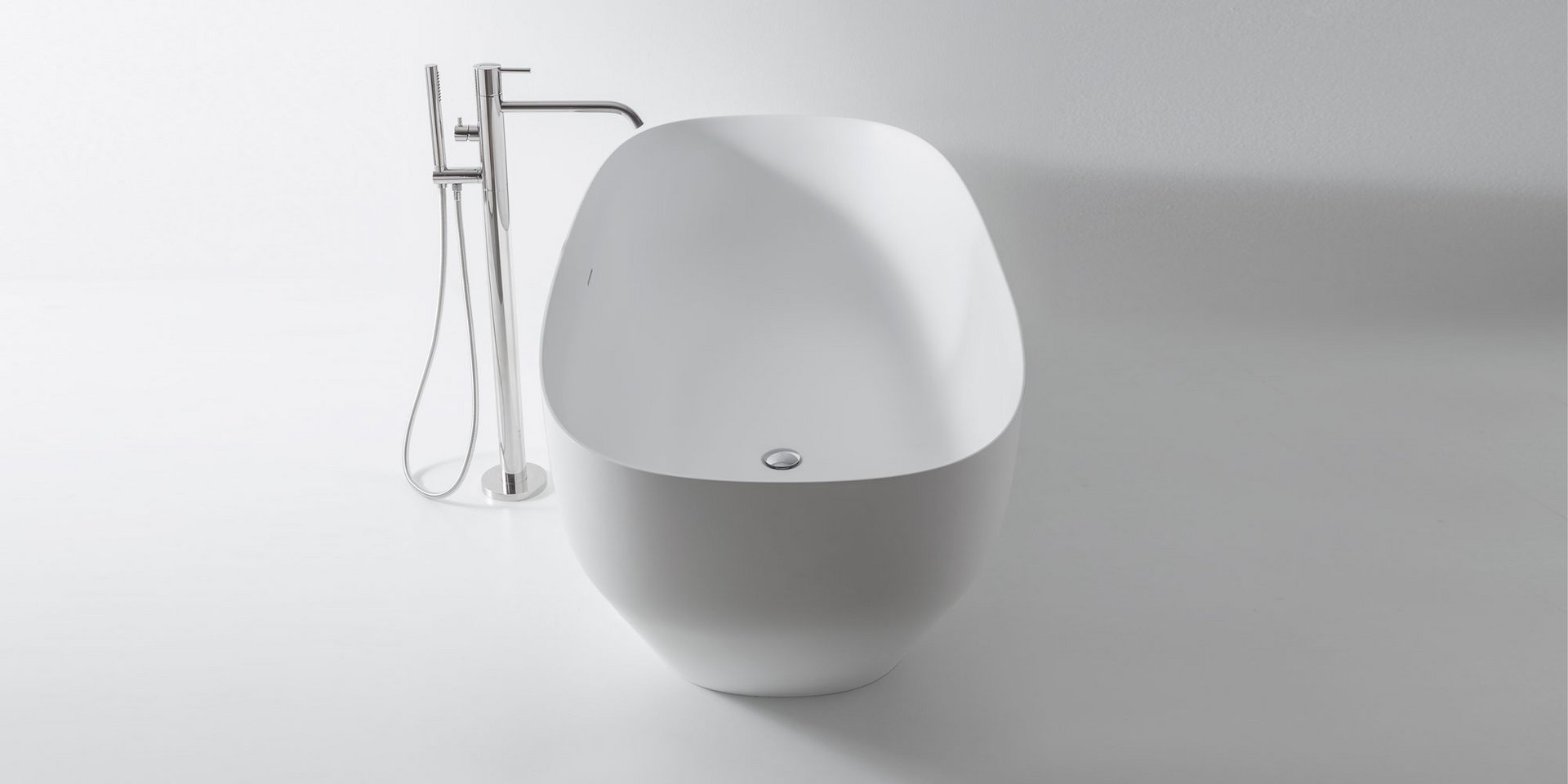 Oval glossy Cristalplant bathtub comlete with drain and pressure plug, siphon and flexible hose. Can be lacquered externally.
