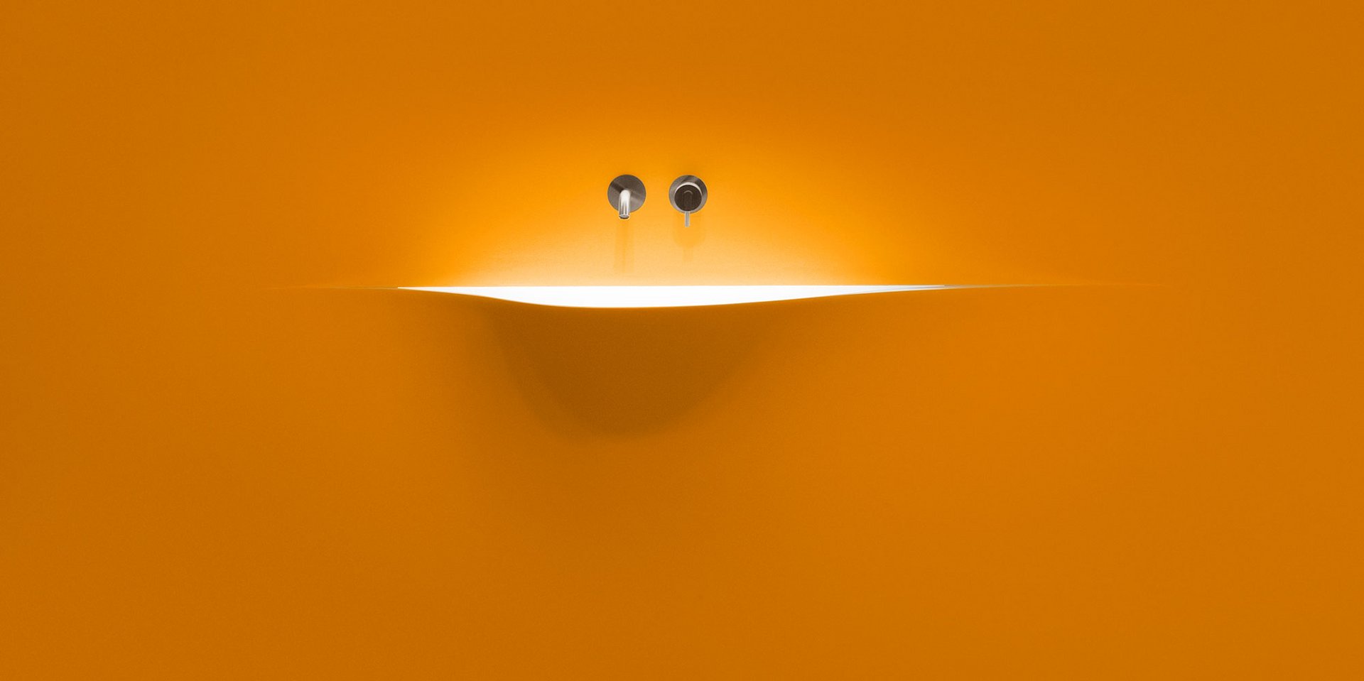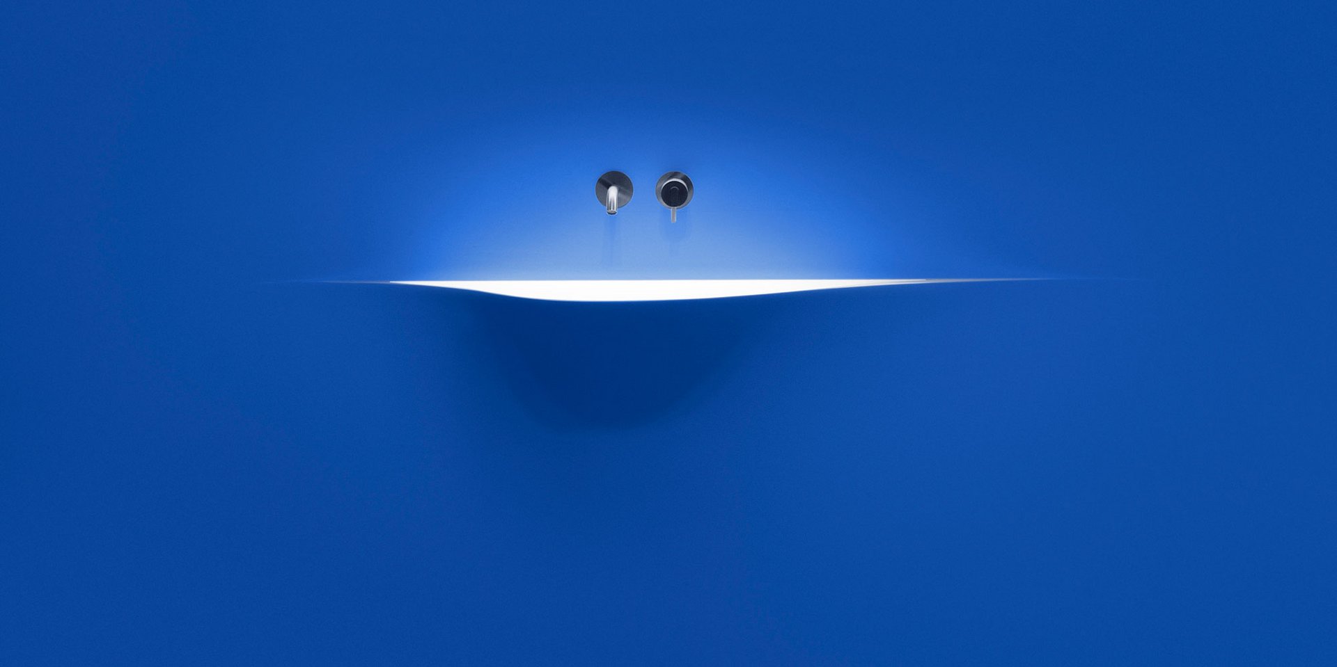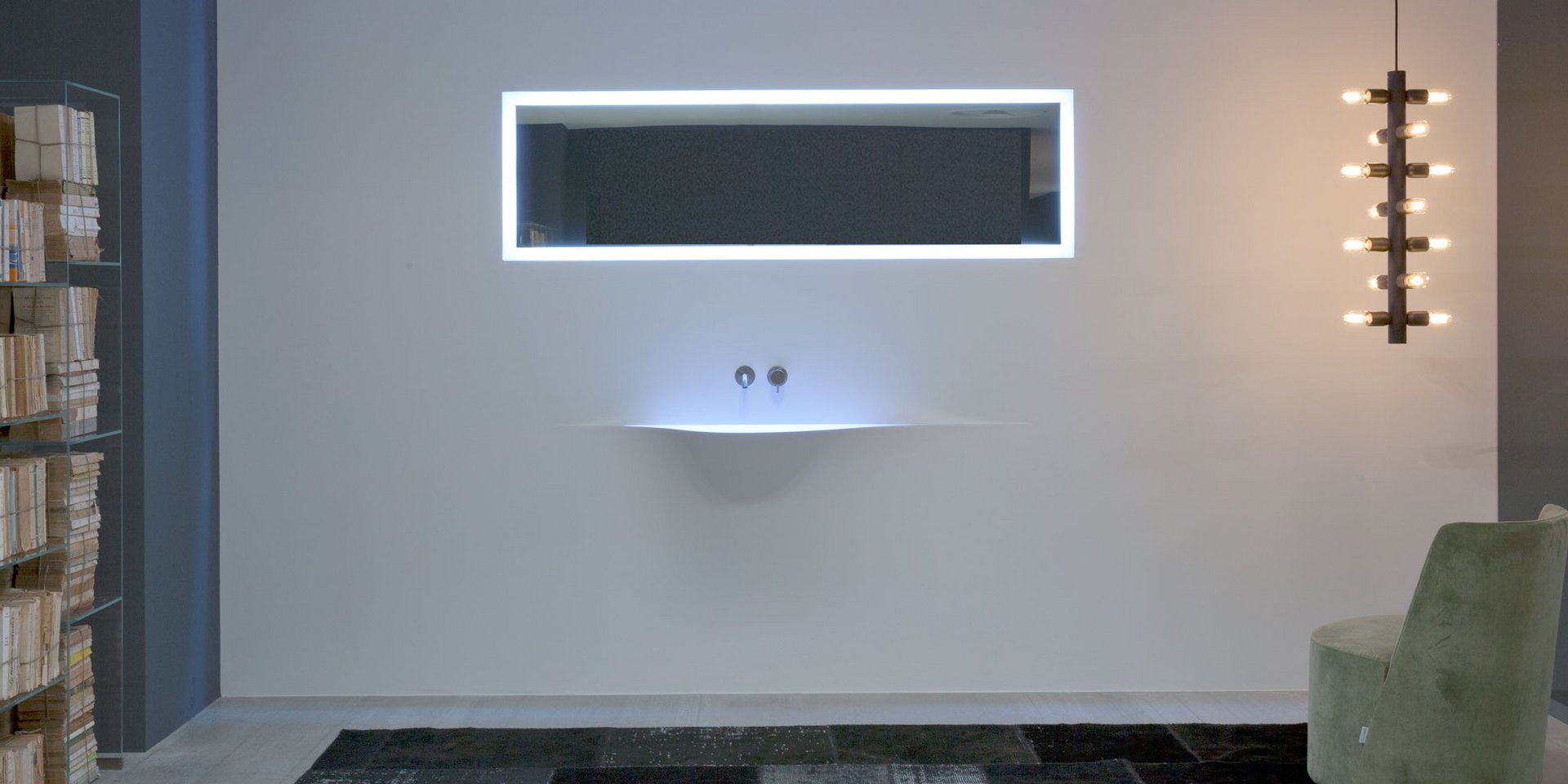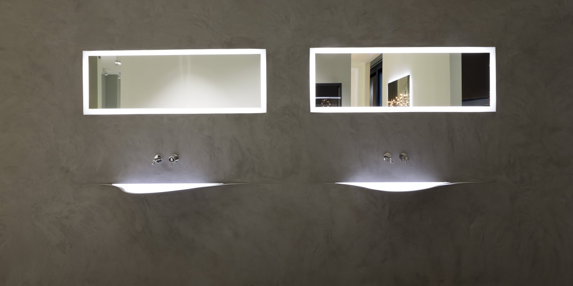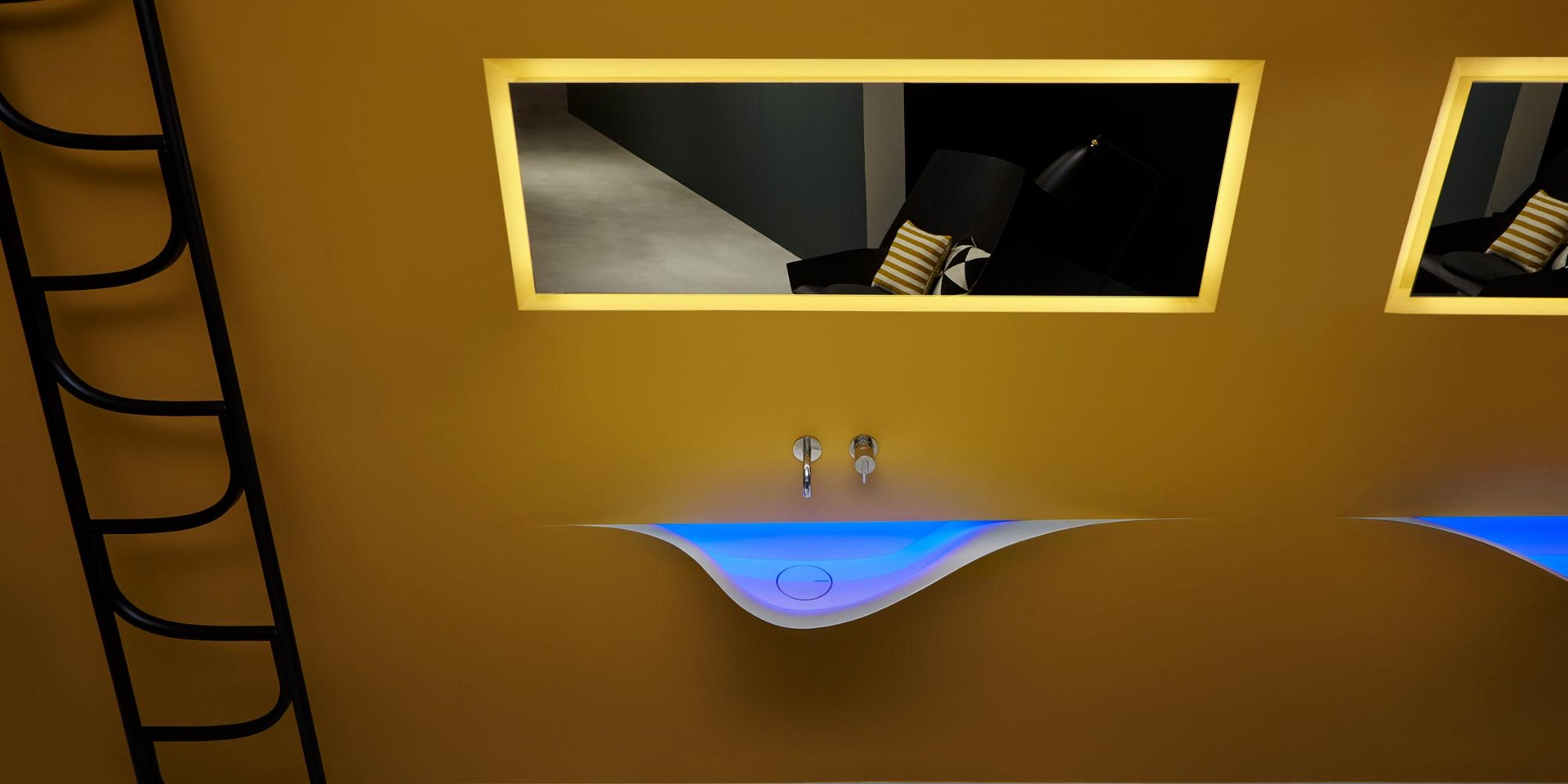 Encased Corian sink with or without led lighting, complete with inspectable drain, trap and flexible hose.