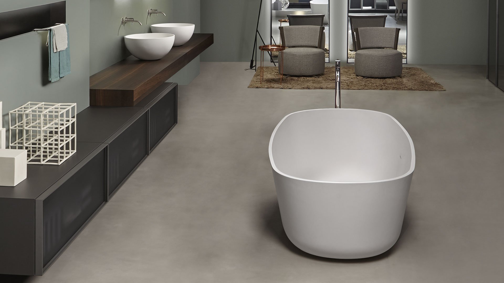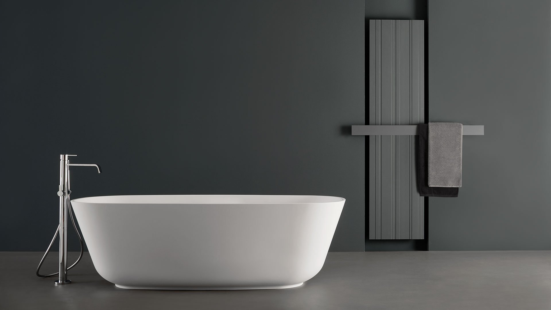 Oval Cristalplant bathtub complete with drain pipe fitting and pressure plug, siphon and flexible hose, that can be lacquered externally.