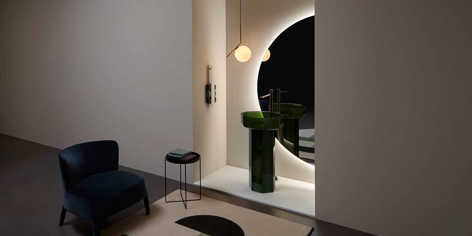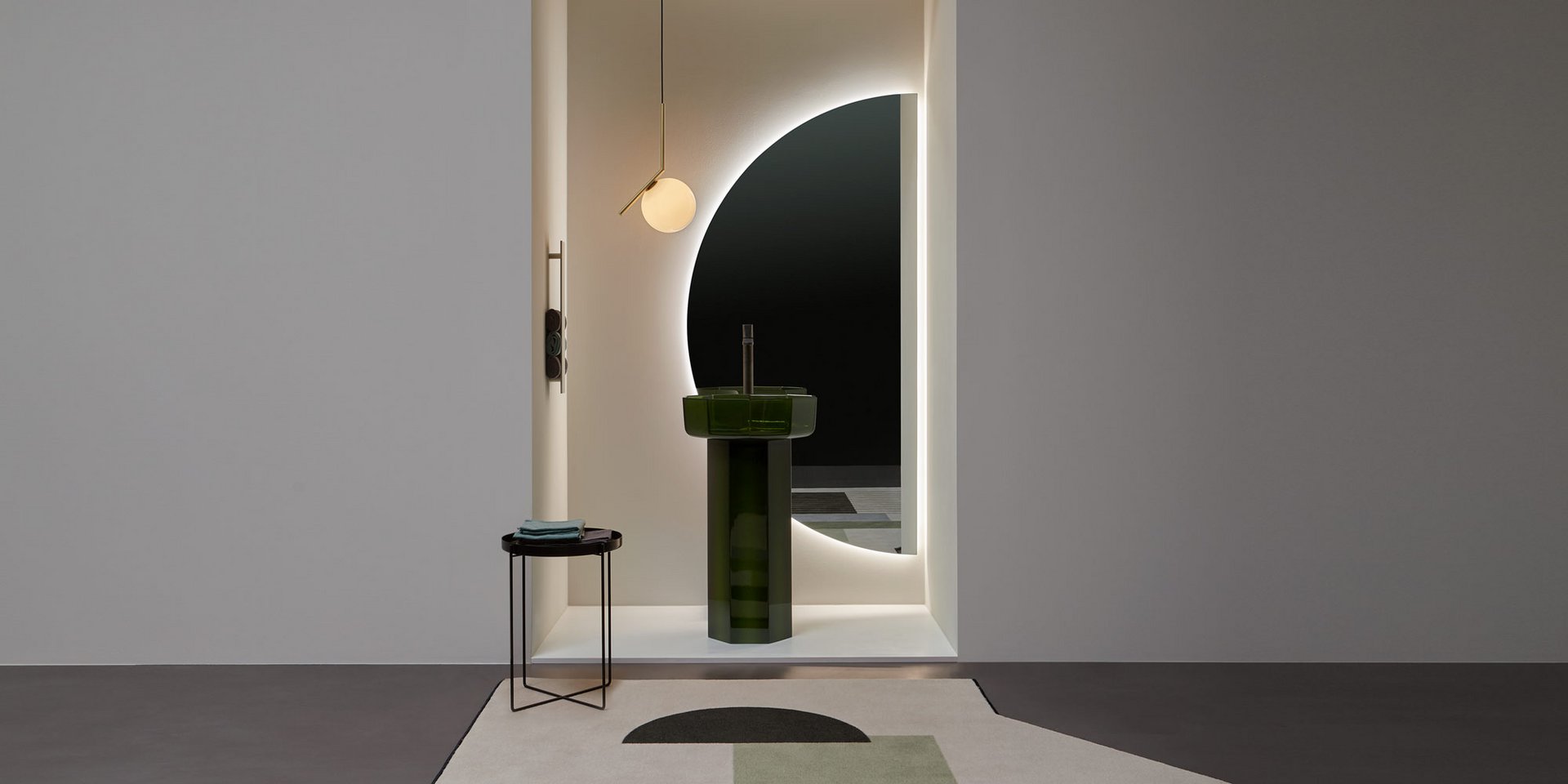 Decagonal shape sink in Cristalmood available in various colors as per our color chart, to be used top mount or combined with base Art. OPALE20 or Art. OPALE21, complete with drain pipe fitting and open plug.