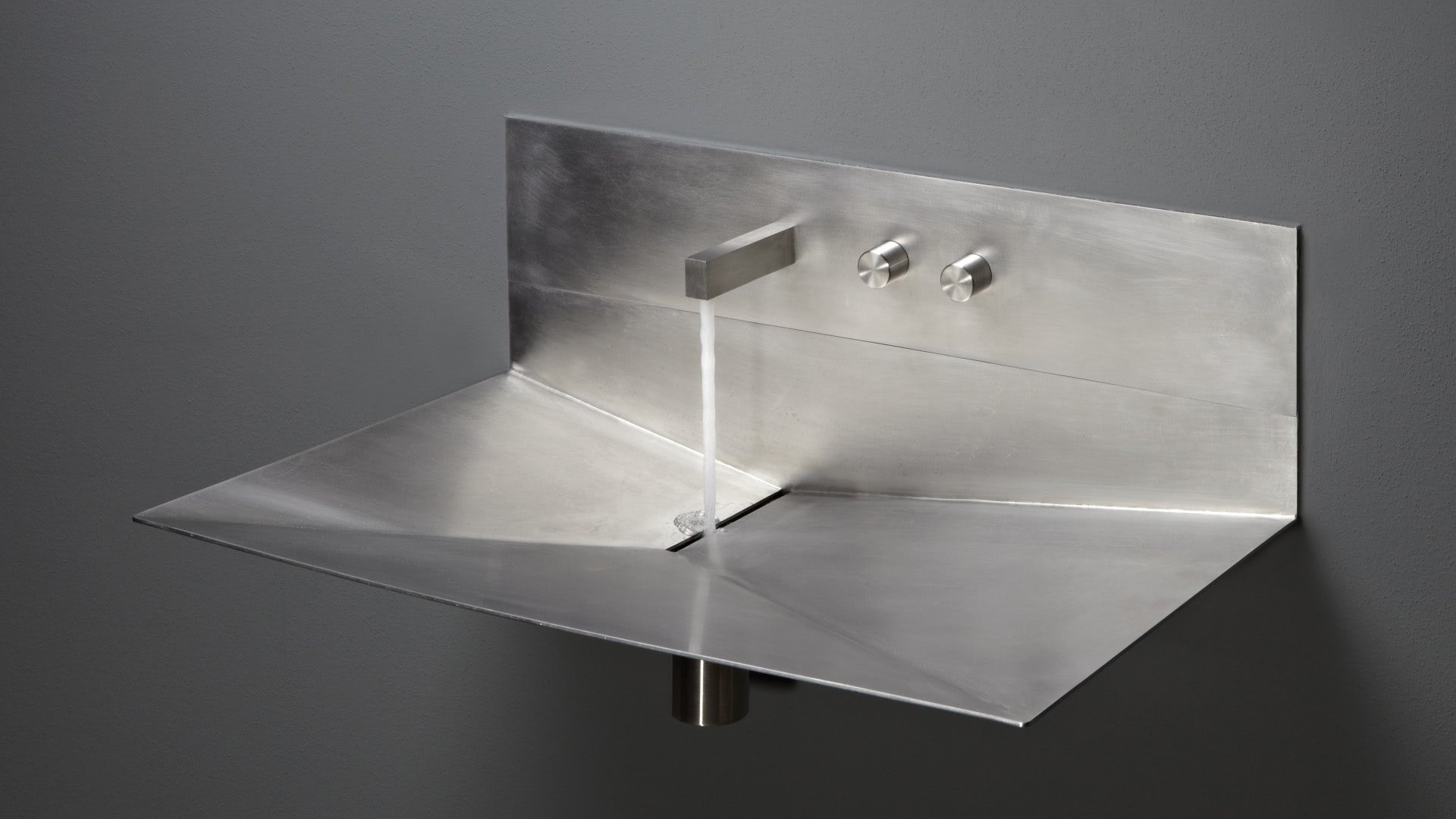 Rectangular wall mount Stainless Steel sink, complete with tap, drain pipe