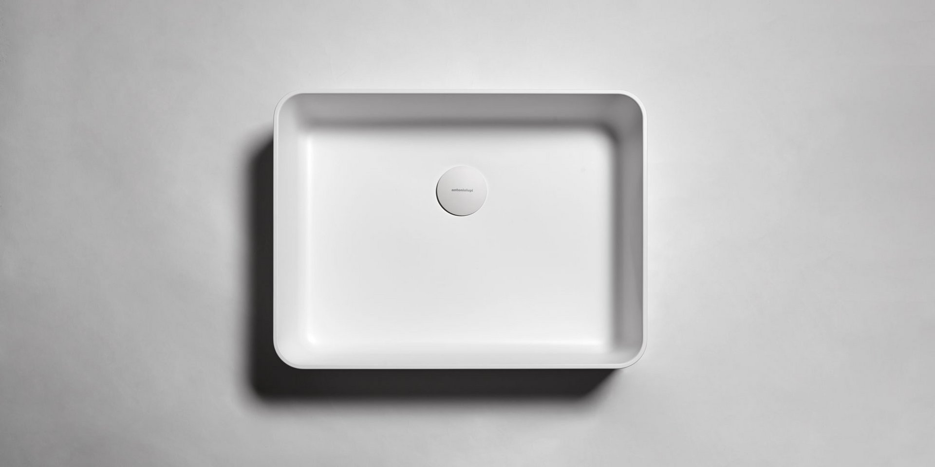 Rectangular top mount or undermount Flumood sink, can be externally lacquered in all colors of our collection, complete with drain pipe fitting and open plug.
