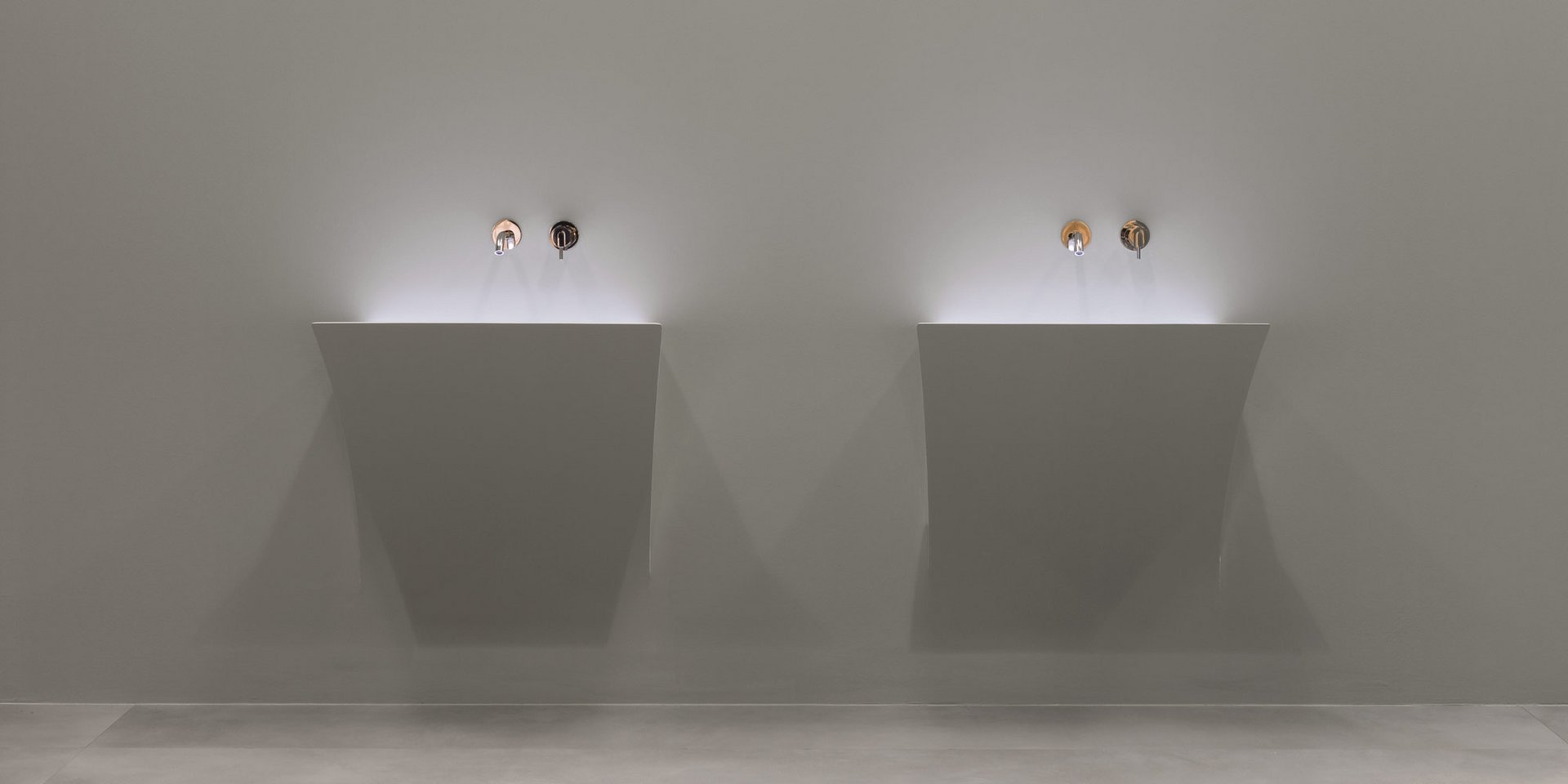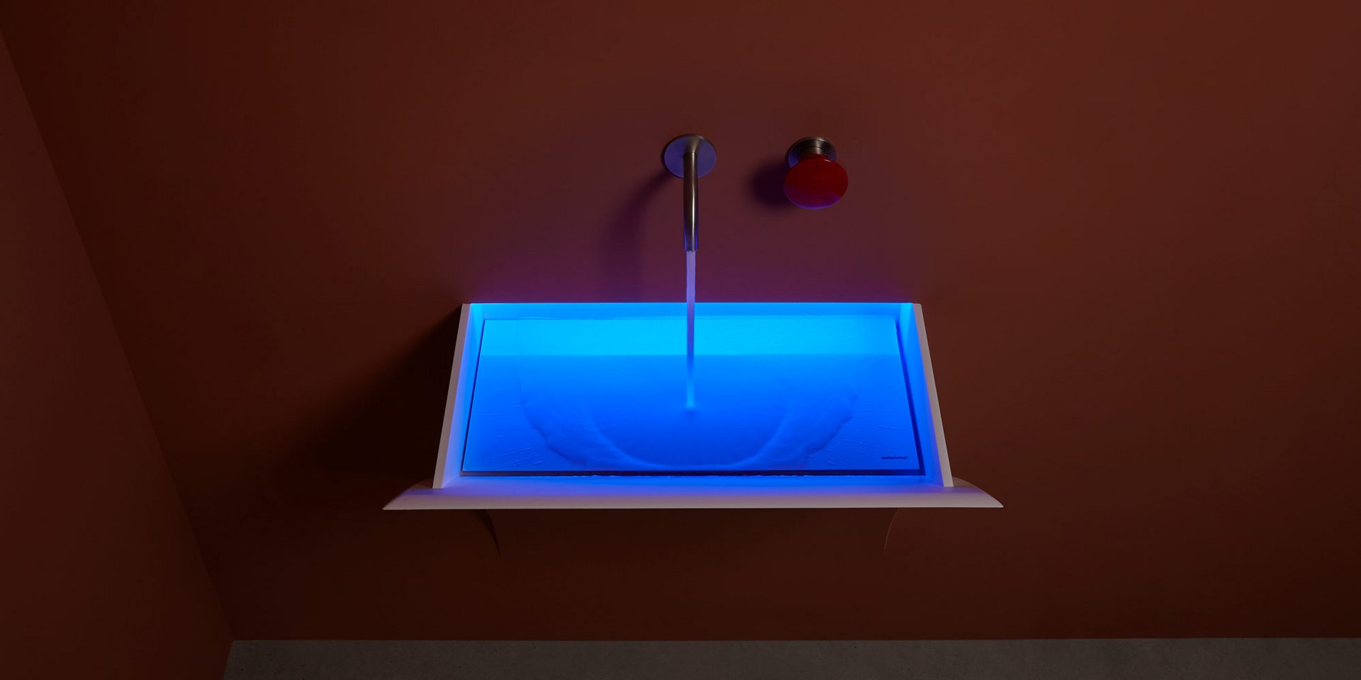 Encased Corian sink with or without led lighting, complete with inspectable drain, trap and flexible hose.