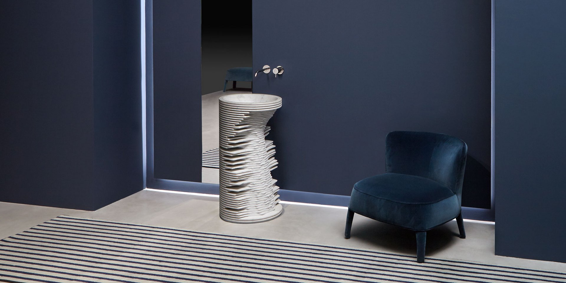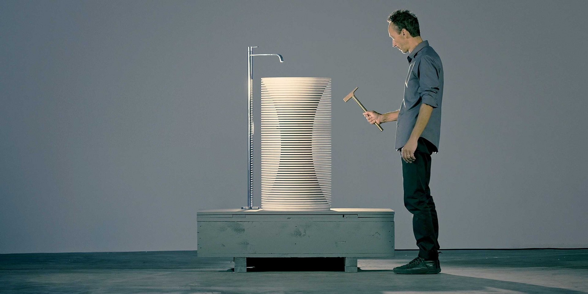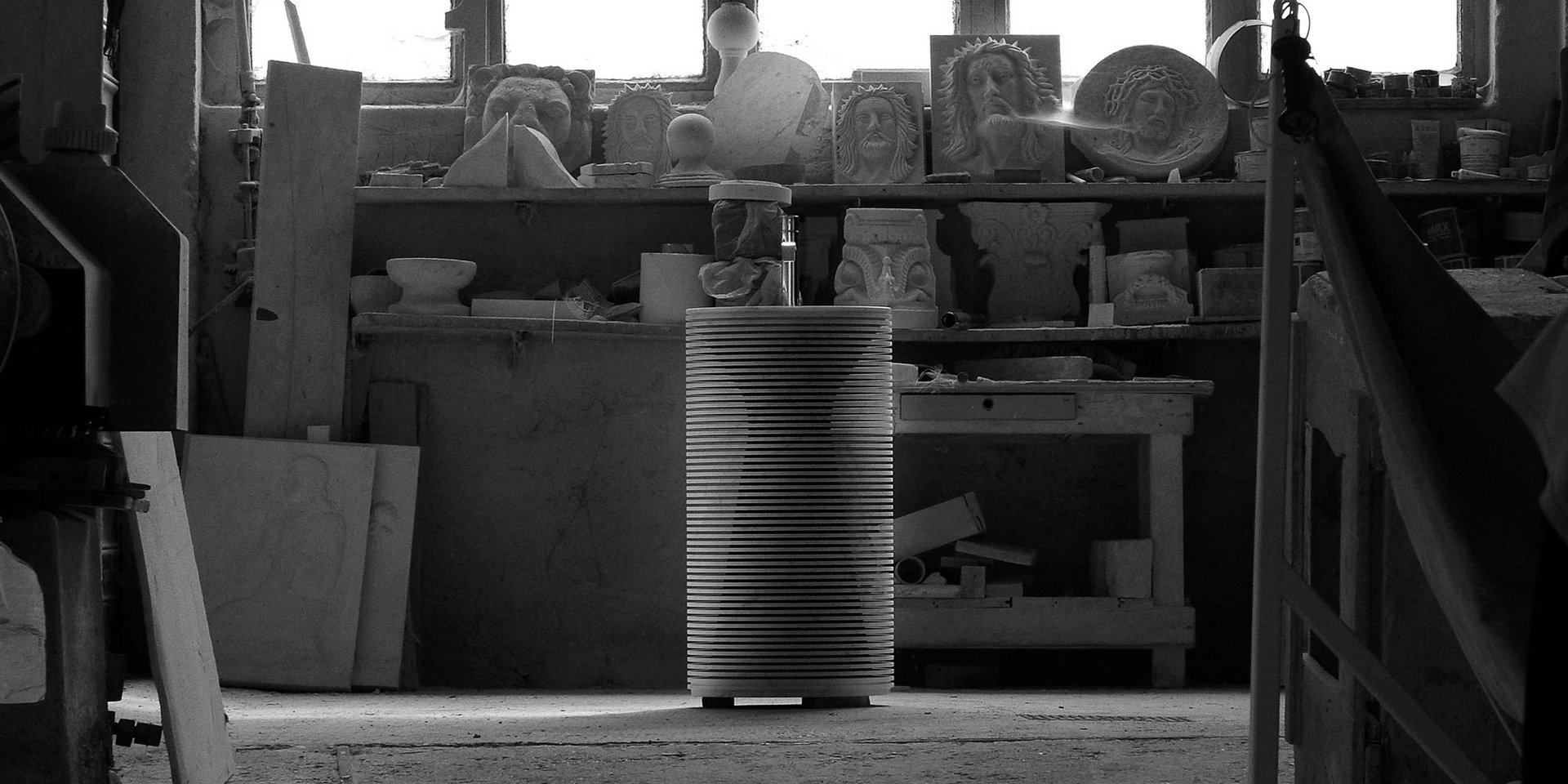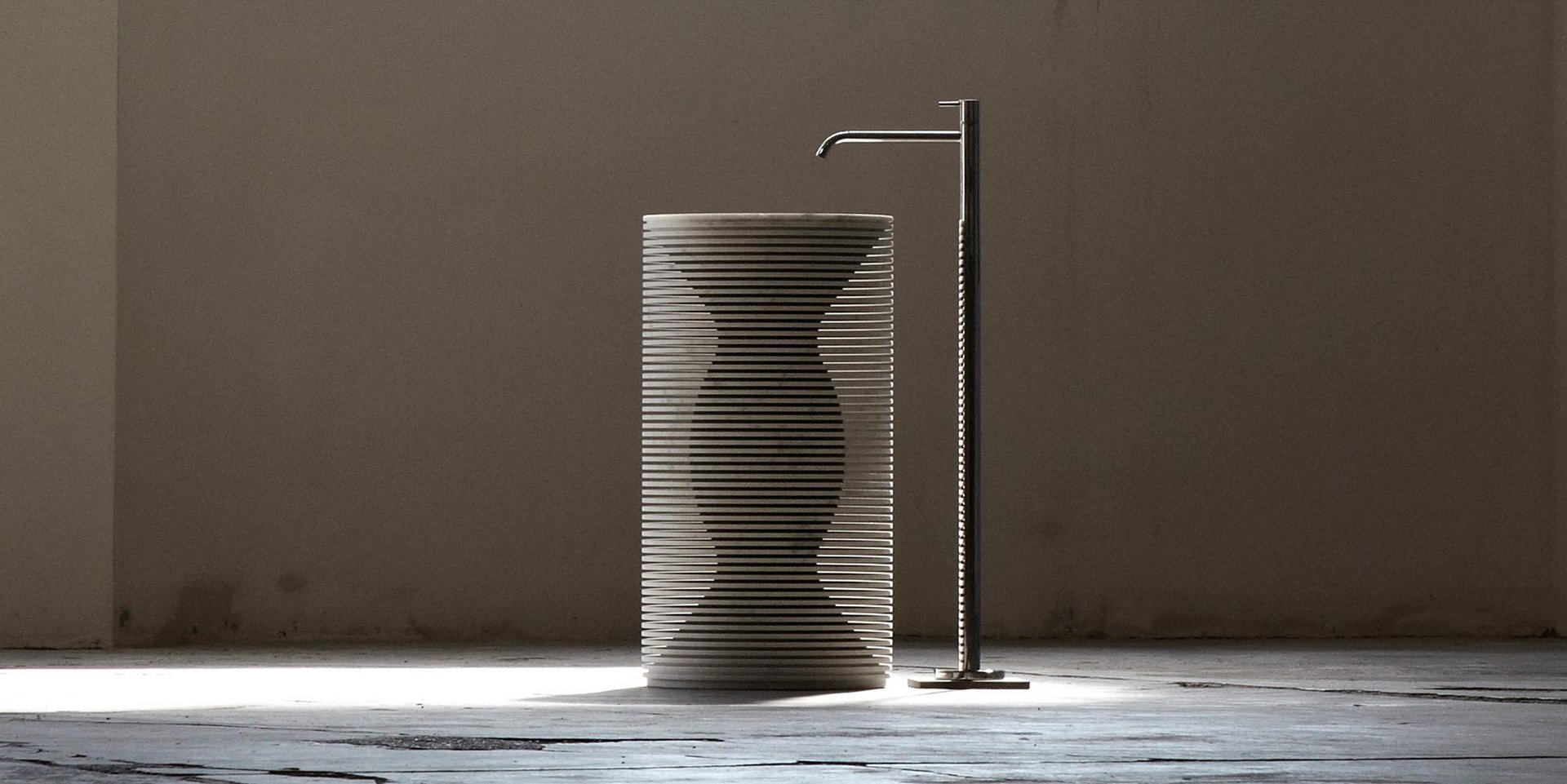 Freestanding stone sink, complete with drain pipe fitting and open plug, trap and flexible hose