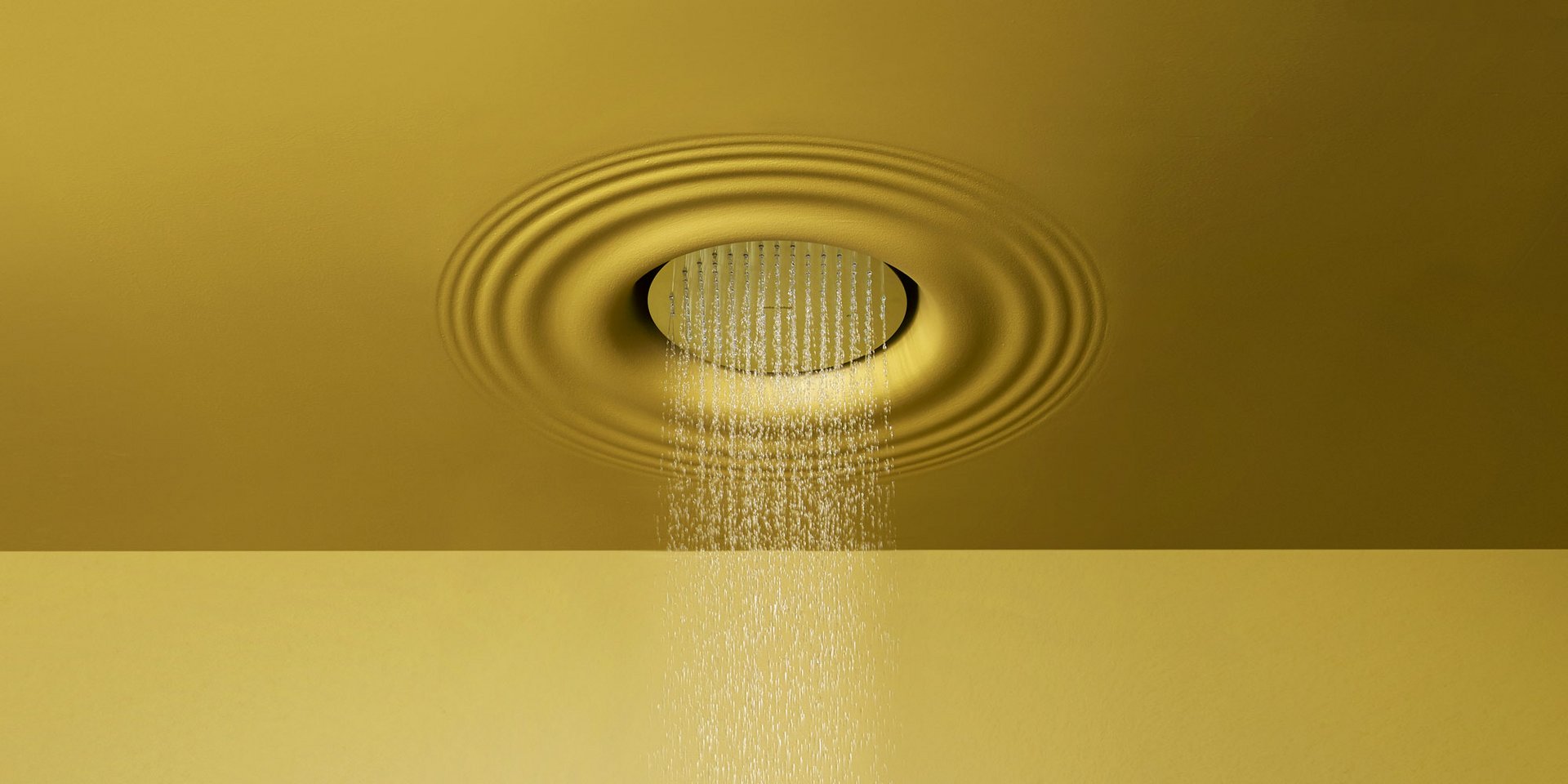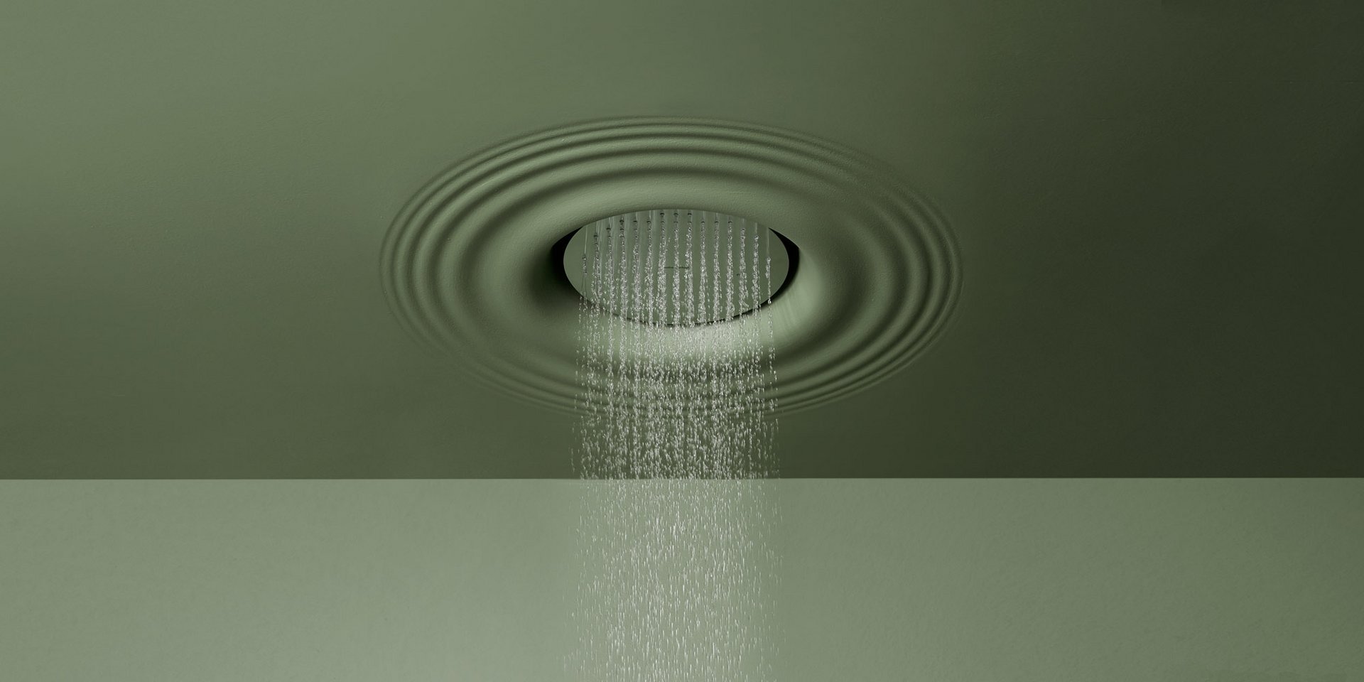 Ceiling encased Flumood frame with satin stainless steel AISI 304 showerhead.