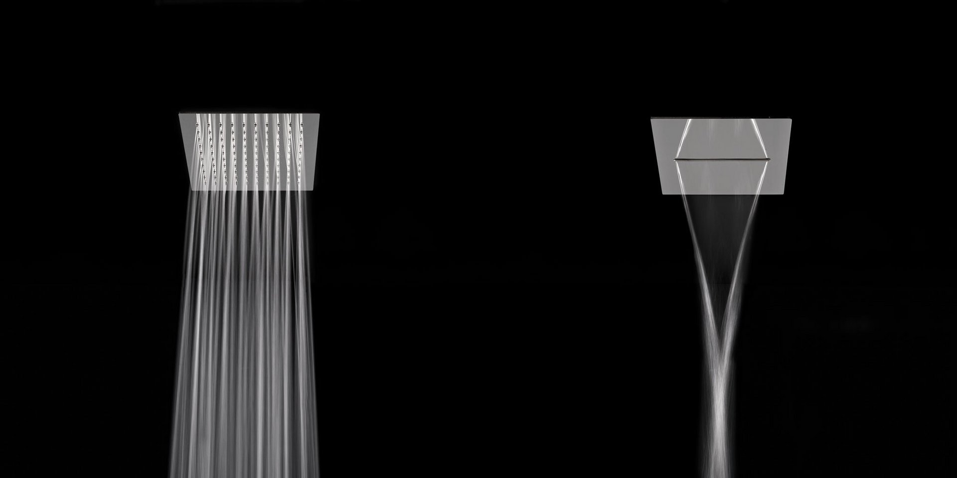 Encased modular showerhead with hard center jet in polished stainless steel AISI 304.