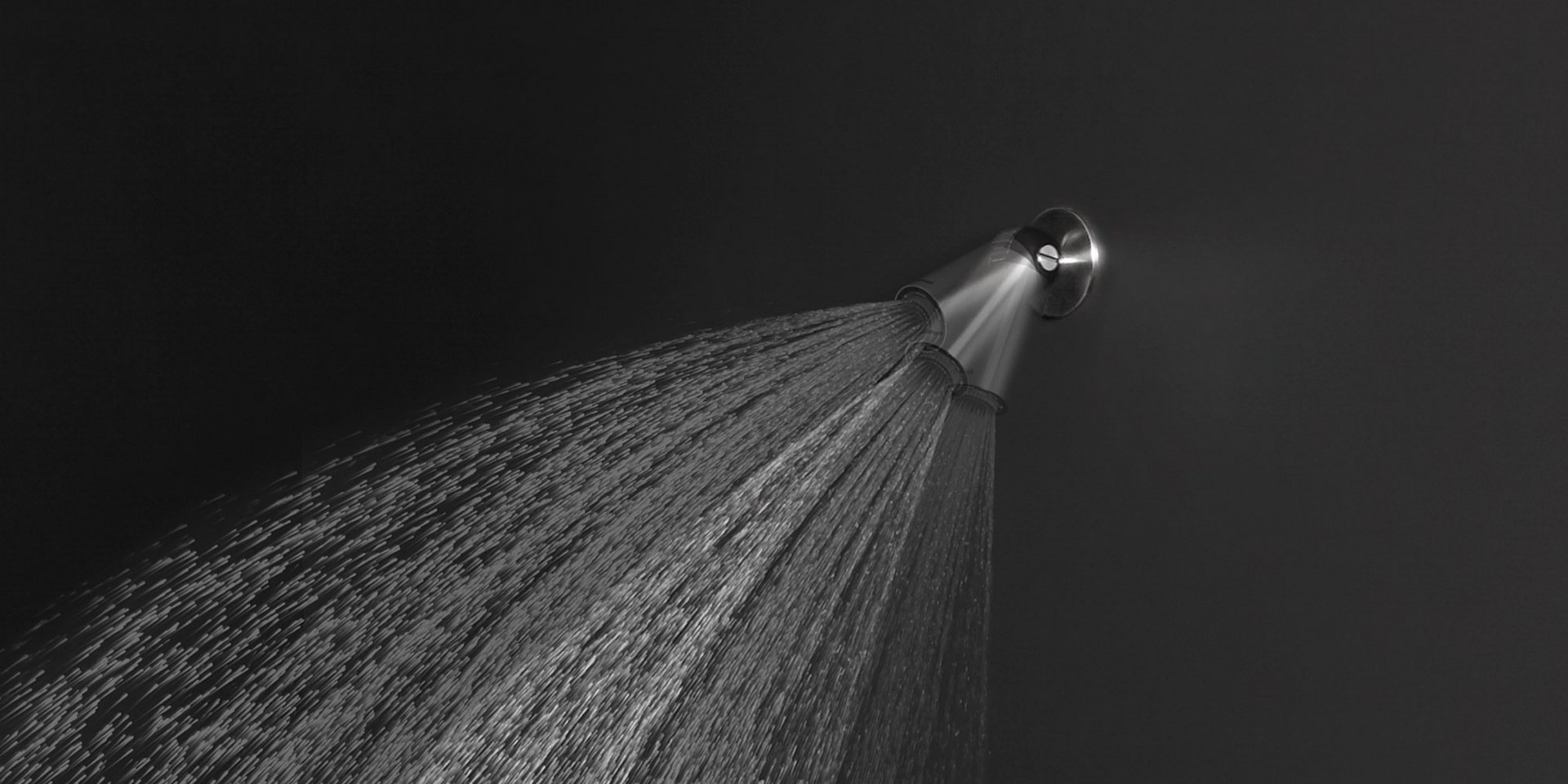Wall or ceiling showerhead in stainless steel and black Delrin?, with jet regulation.